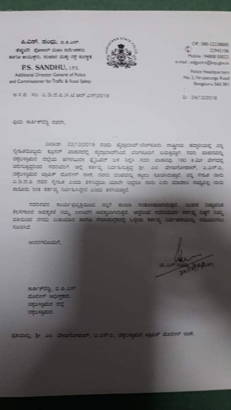 ನಗರದ ಸಂಚಾರಿ ಠಾಣೆಯಲ್ಲಿ ಎಎಸ್ಐ ಆಗಿ ಕರ್ತವ್ಯ ನಿರ್ವಹಿಸುತ್ತಿರುವ ಎಂ. ವೇಣುಗೋಪಾಲ್ ಅವರು, ಕಳೆದ ಡಿ.22ರಂದು ನಗರದ ಹೊರವಲಯದಲ್ಲಿ ಹಾದು ಹೋಗಿರುವ ರಾಷ್ಟ್ರೀಯ ಹೆದ್ದಾರಿ 7ರಲ್ಲಿ ಕರ್ತವ್ಯ ನಿರತರಾಗಿದ್ದ ವೇಳೆ 150 ಕಿಲೋಮೀಟರ್ ವೇಗದಲ್ಲಿ ಸಾಗುತ್ತಿದ್ದ ಕ್ರೂಸರ್ ಕಂಡು ತಡೆದಿದ್ದಾರೆ. ಅಲ್ಲದೆ ಅತಿ ವೇಗಕ್ಕಾಗಿ ದಂಡ ಪಾವತಿಸುವಂತೆ ಸೂಚಿಸಿದ್ದಾರೆ.