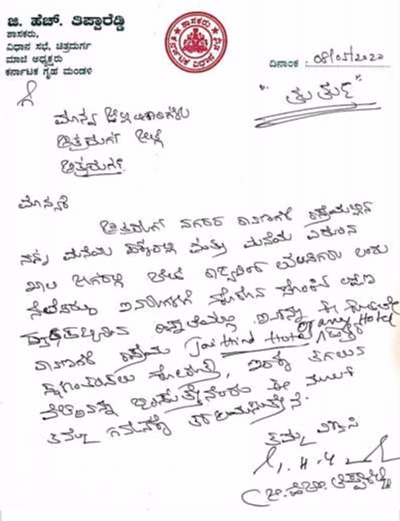 ಚಿತ್ರದುರ್ಗ, (ಮೇ.08): ಕೋಟೆನಾಡು ಚಿತ್ರದುರ್ಗಕ್ಕೂ ಕೊರೋನಾ ಕಂಟಕ ಇದೀಗ ತಗುಲಿದೆ ಎನ್ನುವ ಮಾಹಿತಿಯನ್ನು ಬಿಜೆಪಿ ಶಾಸಕ ಶಾಸಕ ತಿಪ್ಪಾರೆಡ್ಡಿಯವರೇ ಪತ್ರದ ಬಹಿರಂಗಪಡಿಸಿದ್ದಾರೆ.