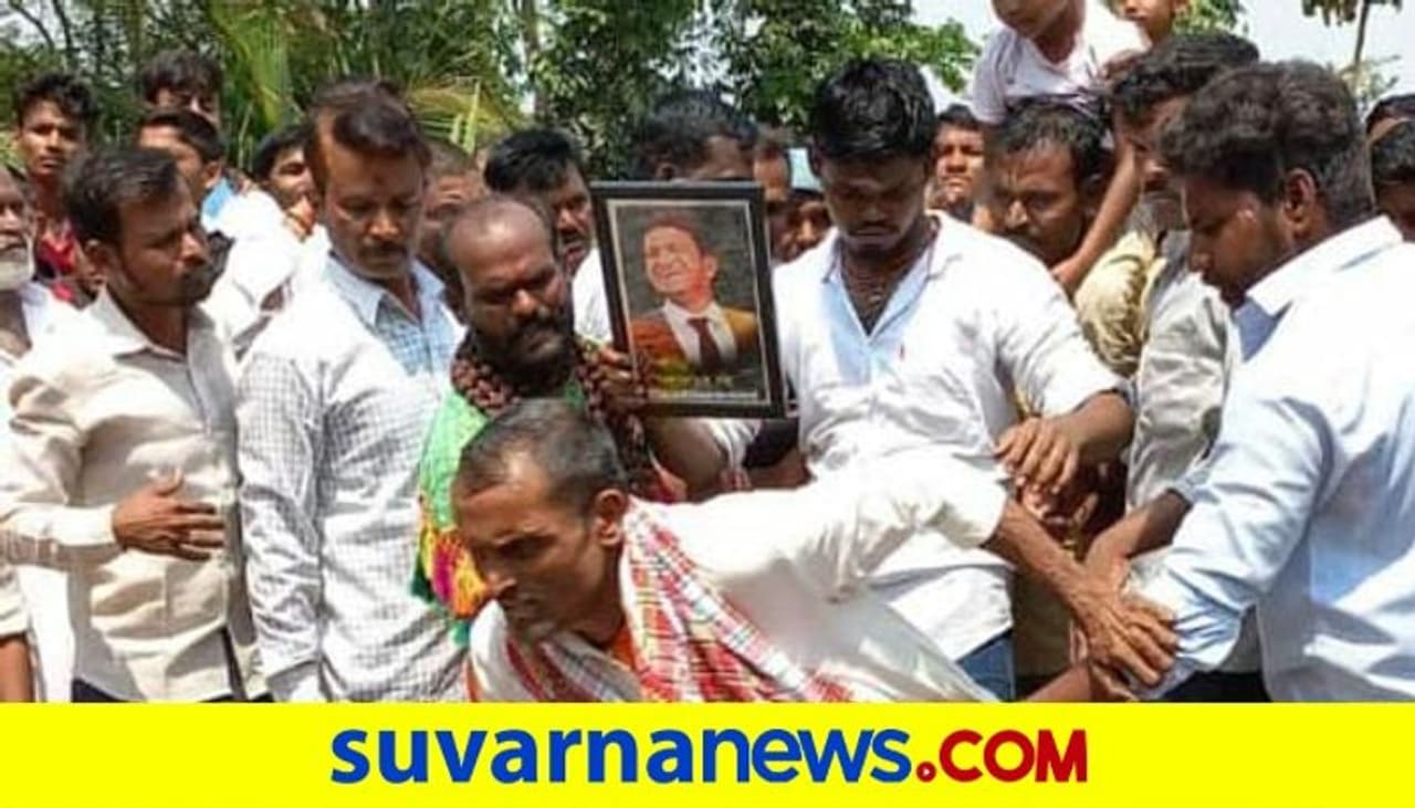 ಅಪ್ಪು ಪೋಟೋ ಹಿಡಿದು ಕೆಂಡ ಹಾಯ್ದ ಅಭಿಮಾನಿ: ವಿಜಯಪುರ ಜಿಲ್ಲೆಯ ಕೋಲ್ಹಾರ (Kolhar) ಪಟ್ಟಣದಲ್ಲಿ ನಡೆದ ವೀರಭದ್ರೇಶ್ವರ ಜಾತ್ರೆಯಲ್ಲಿ ಅಭಿಮಾನಿಯೊಬ್ಬ ಅಪ್ಪು ಫೋಟೋ ಹಿಡಿದು ಕೆಂಡ ಹಾಯುವ ಮೂಲಕ ಅಪ್ಪು ಅಜರಾಮರ ಅನ್ನೋದನ್ನ ಸಾರಿದ್ದಾನೆ. ಪ್ರತಿ ವರ್ಷ ನಡೆಯೋ ವೀರಭದ್ರ ಜಾತ್ರೆಯಲ್ಲಿ ಕೆಂಡ ಹಾಯೋದು ವಾಡಿಕೆ.