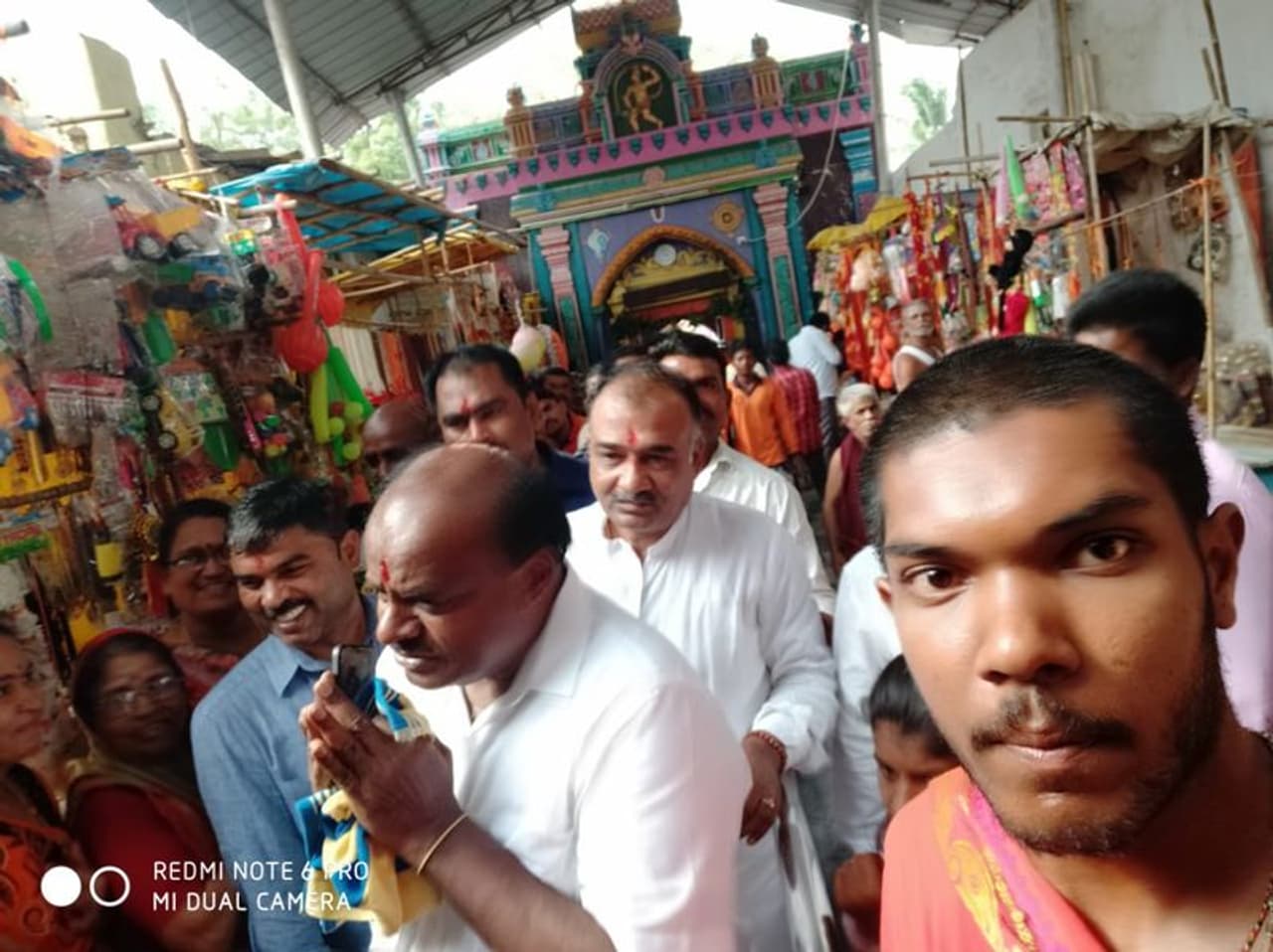 ವಿಜಯಪುರ(ಏ.16): ಧರ್ಮ ದಂಗಲ್ ವಿಚಾರದಲ್ಲಿ ಹಿಂದೂ(Hindu) ಸಂಘಟನೆಗಳ ವಿರುದ್ಧ ಹರಿಹಾಯ್ದು, ಮುಸ್ಲಿಂ(Muslim) ಸಮುದಾಯದ ಪರ ನಿಂತ ಮಾಜಿ ಸಿಎಂ ಎಚ್.ಡಿ. ಕುಮಾರಸ್ವಾಮಿ(HD Kumaraswamy) ಈಗ ಸಾಫ್ಟ್ ಹಿಂದೂತ್ವ ಪ್ರದರ್ಶಿಸಿದ್ದಾರೆ. ಜನತಾ ಜಲಧಾರೆ ಕಾರ್ಯಕ್ರಮ ನಿಮಿತ್ಯ ವಿಜಯಪುರ(Vijayapura) ಜಿಲ್ಲೆಯ ಆಲಮಟ್ಟಿಗೆ ಭೇಟಿ ನೀಡಿದ ಹೆಚ್ಡಿಕೆ ಇಂದು ಜಾಗೃತ ಸ್ಥಳ ಯಲಗೂರು ಆಂಜನೇಯ ದೇಗುಲಕ್ಕೆ ಭೇಟಿ ನೀಡಿದರು. ಇಂದು ಹನುಮ ಜಯಂತಿ ಹಿನ್ನೆಲೆ ಮಾರುತಿಯ ದರ್ಶನ ಪಡೆದರು. ಈ ಮೂಲಕ ಸಾಫ್ಟ್ ಹಿಂದೂತ್ವ ಪ್ರದರ್ಶಿಸಿದ್ದಾರೆ.