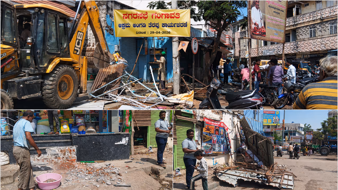 ಗಂಗಾವತಿ ನಗರದ ವಿವಿಧ ವೃತ್ತಗಳು ಮತ್ತು ರಸ್ತೆ ಪಕ್ಕದ ಚರಂಡಿಗಳ ಮೇಲೆ ನಿರ್ಮಿಸಲಾಗಿದ್ದ ಫುಟ್ಪಾತ್ಗಳಲ್ಲಿರುವ 150ಕ್ಕು ಹೆಚ್ಚು ಅಂಗಡಿಗಳನ್ನು ನಗರಸಭೆಯವರು ತೆರವು ಕಾರ್ಯಾಚರಣೆ ನಡೆಸಿದರು.