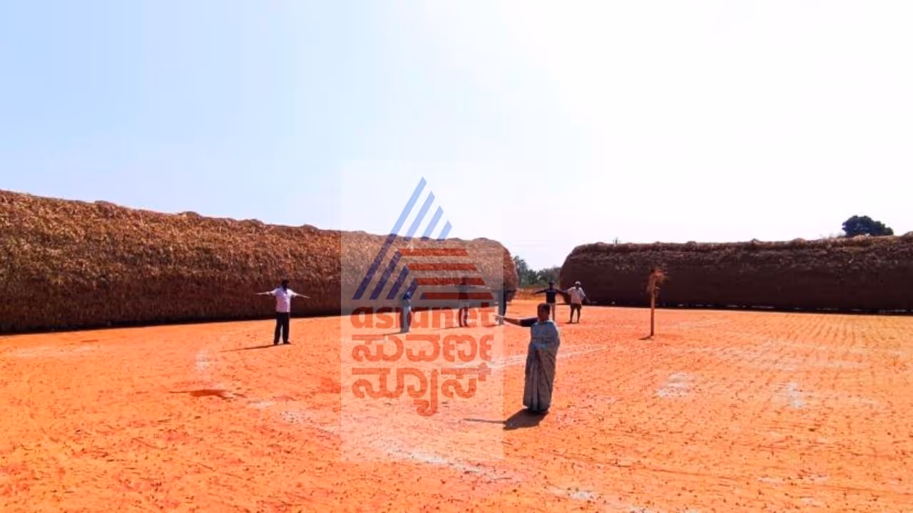 ಕಣದಲ್ಲಿ 30 ಮಾರು ಉದ್ದದ ಎರಡು ಮೆದೆ