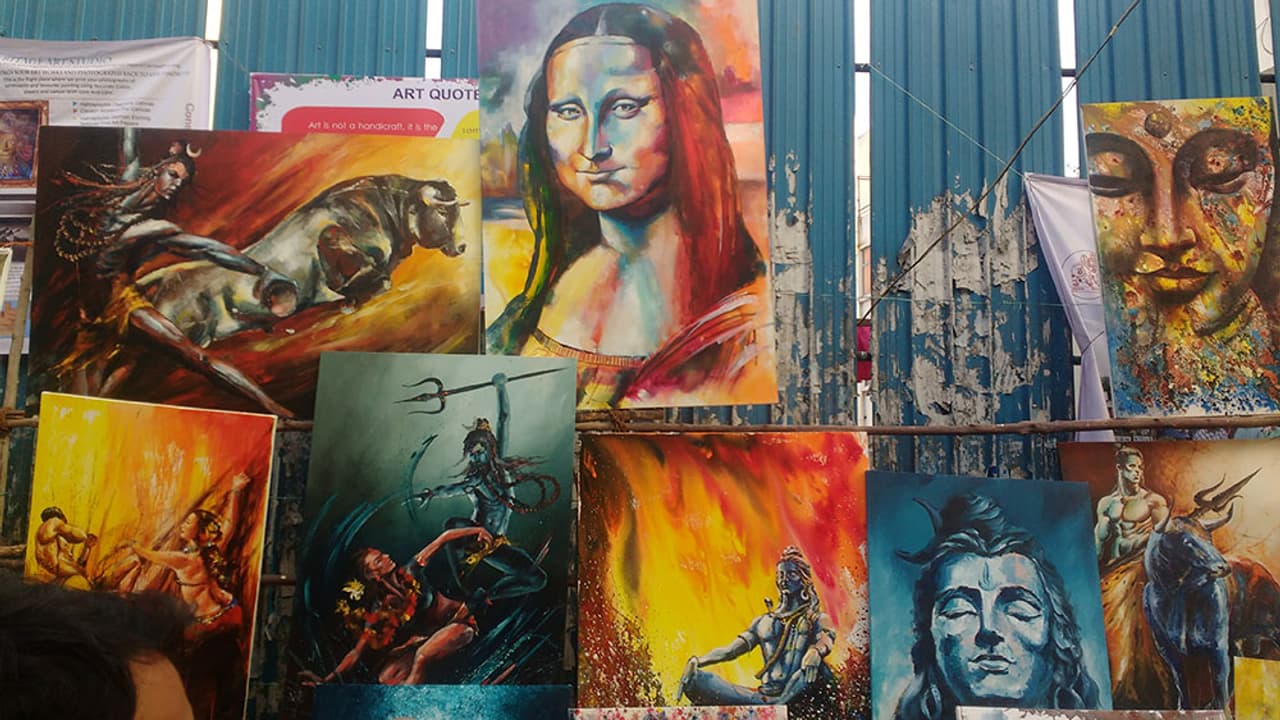 ರಸ್ತೆ ಮಧ್ಯೆ, ರಸ್ತೆಯ ಇಕ್ಕೆಗಳಲ್ಲಿ ಮಾತ್ರವಲ್ಲದೆ ಮರದ ರೆಂಬೆ-ಕೊಂಬೆಗಳ ಮೇಲೆ ಹೀಗೆ ಕಣ್ಣು ಹಾಯಿಸಿದಷ್ಟು ದೂರ ಕಲಾಕೃತಿಗಳದ್ದೇ ಸಾಮ್ರಾಜ್ಯ. ಕಲಾಪ್ರೇಮಿಗಳು ತಮ್ಮ ಮೊಬೈಲ್ ಮತ್ತು ಕ್ಯಾಮರಾದಲ್ಲಿ ಕಲಾಕೃತಿಗಳನ್ನು ಸೆರೆಹಿಡಿಯುತ್ತಾ, ಆ ಕಲಾಕೃತಿಗಳ ದರ, ಕಲಾವಿದರ ಹೆಸರು ಇತ್ಯಾದಿಗಳ ಮಾಹಿತಿ ಸಂಗ್ರಹಿಸುತ್ತಿದ್ದ ದೃಶ್ಯ ಕಂಡು ಬಂತು.