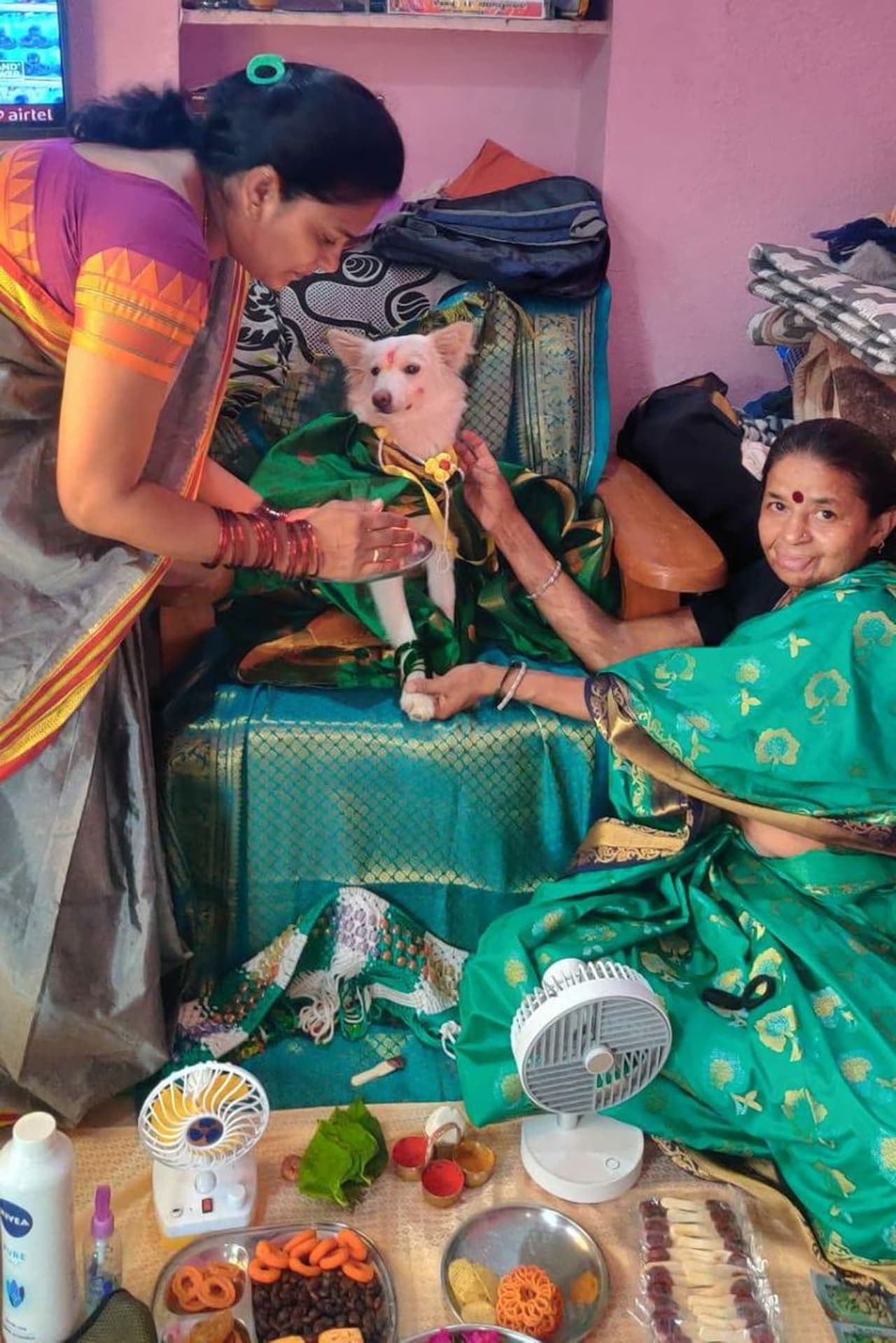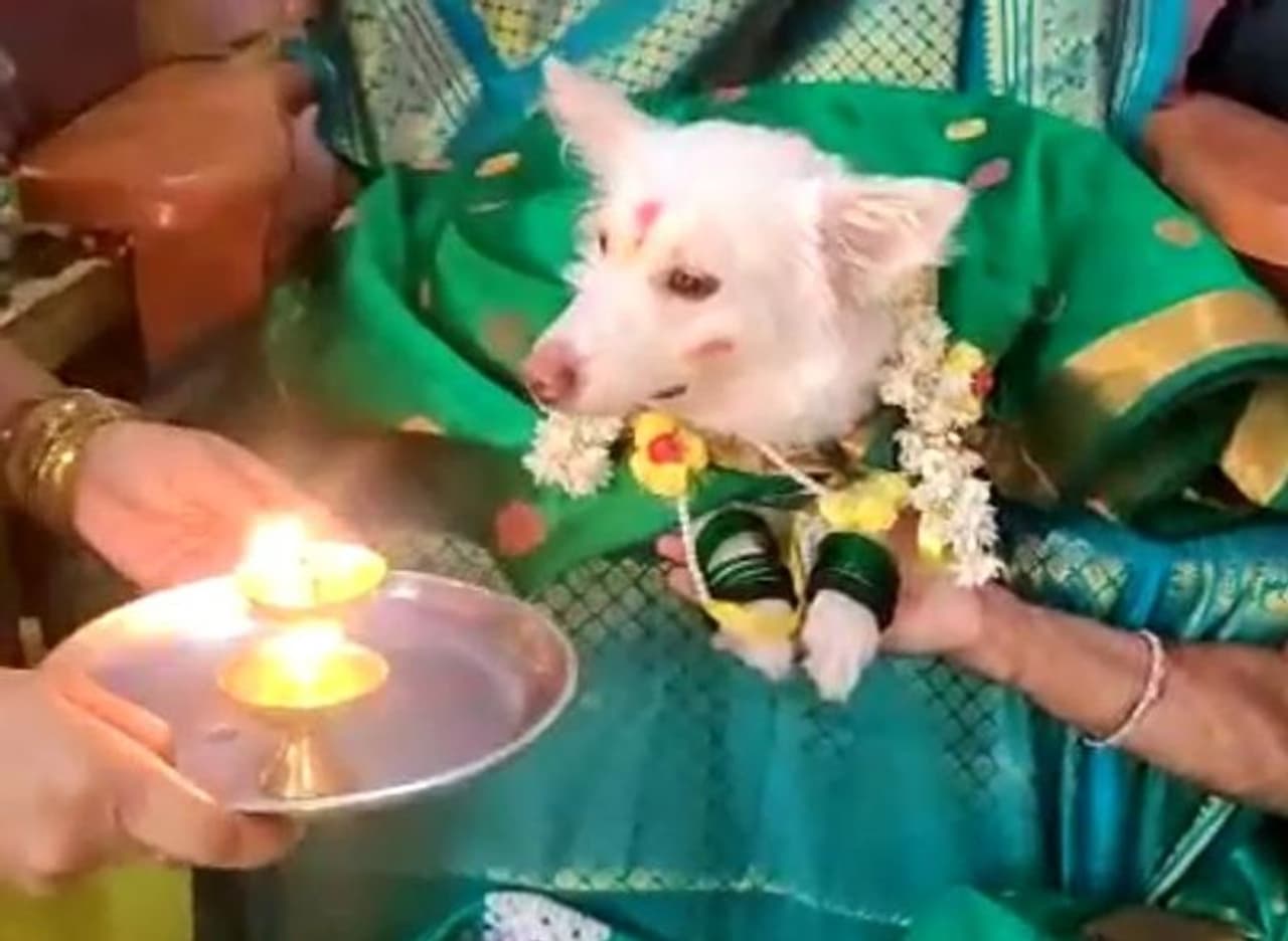 ನಾಯಿಗೆ ಸೀರೆಯುಡಿಸಿ, ಕುಂಕುಮ ಹಚ್ಚಿ, ಬಳೆ ತೊಡಿಸಿ ಸೀಮಂತ ಕಾರ್ಯ