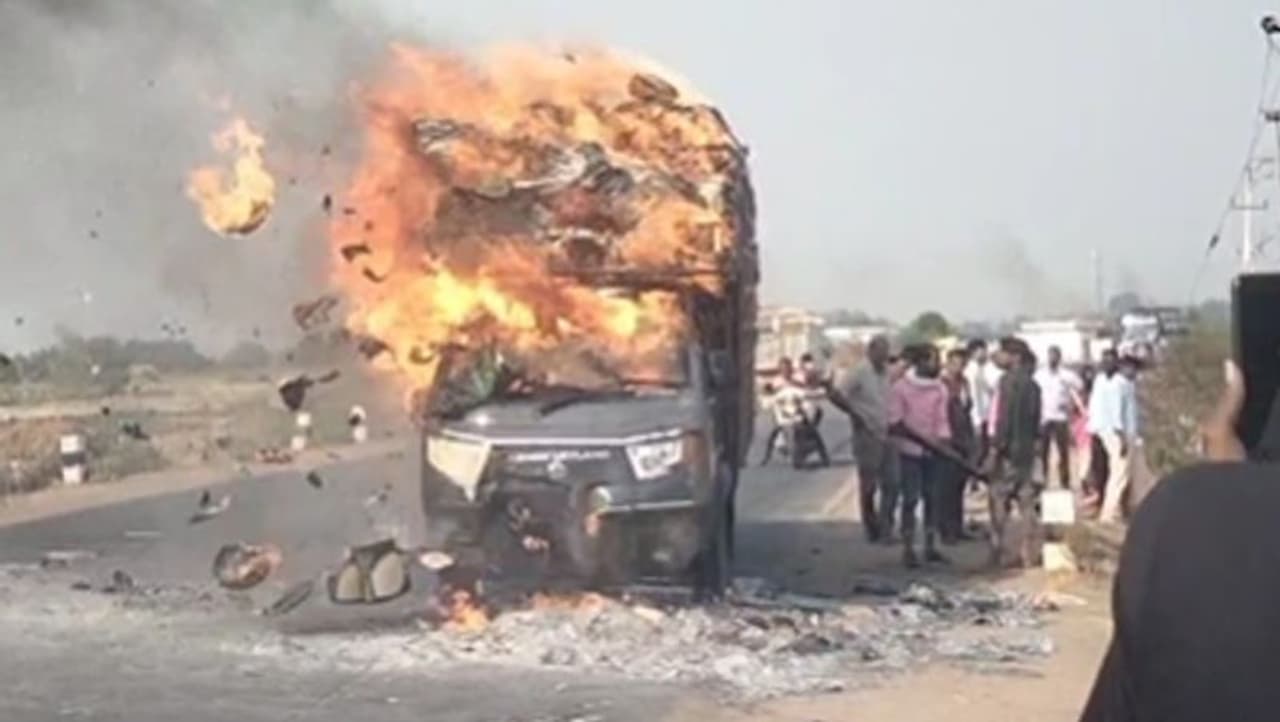 ಯಾದಗಿರಿ: ನಡುರಸ್ತೆಯಲ್ಲೇ ಧಗಧಗನೇ ಉರಿದ ವಾಹನ!