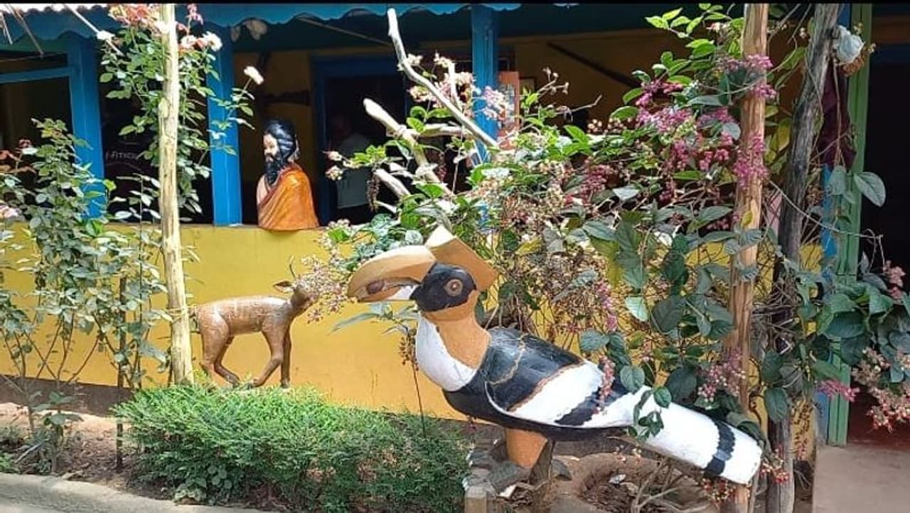 ಅಂದಹಾಗೆ, ಗುಡ್ಡಳ್ಳಿಗೆ ಟ್ರಕ್ಕಿಂಗ್ ಹೋದವರು ಗುಡ್ಡ ಭಾಗದಿಂದ ಇಳಿಯುತ್ತಿದ್ದಂತೇ ವಿಶ್ರಾಮ್ ಬಾಬು ಗೌಡ ಅವರ ಕುಟುಂಬದ ಮನೆ ಸಿಗುತ್ತದೆ. ಇವರ ಮನೆಯ ಅಂಗಣ ಪ್ರವೇಶಿಸುತ್ತಿದ್ದಂತೇ ಮರದ ಗದೆ, ಹಾರ್ನ್ಬಿಲ್, ಹುಲಿ, ಹಕ್ಕಿ, ಮೊಸಳೆ, ಕಡವೆ ಮುಂತಾದ ಕಾಡು ಪ್ರಾಣಿ ಹಾಗೂ ಪಕ್ಷಿಗಳು ಪ್ರವಾಸಿಗರನ್ನು ಸ್ವಾಗತಿಸುತ್ತವೆ. ಇನ್ನು ಸ್ವಲ್ಪ ಮುಂದಕ್ಕೆ ಹೋದಂತೆ ಸಿನಿಮಾ ನಟ ಪುನೀತ್ ರಾಜ್ ಕುಮಾರ್, ಪೊಲೀಸರು, ಮದುಮಗಳು ಮುಂತಾದ ಅತ್ಯದ್ಭುತ ಕಲಾಕೃತಿಗಳು ಕೂಡಾ ಇಲ್ಲಿದ್ದು, ಜಿಂಕೆ ತಲೆ, ಖಡ್ಗ, ಕೋವಿಗಳನ್ನು ಕೂಡಾ ಇಲ್ಲಿ ಕಾಣಬಹುದಾಗಿದೆ.