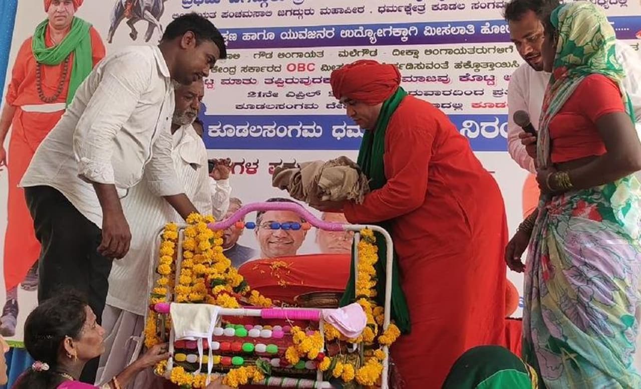 ಕೂಡಲಸಂಗಮದಲ್ಲಿ ಪಂಚಮಸಾಲಿ ಪೀಠದ ಬಸವ ಜಯ ಮೃತ್ಯುಂಜಯ ಸ್ವಾಮಿಗಳ ನೇತೃತ್ವದಲ್ಲಿ ಅತ್ಯಂತ ವಿಶೇಷವಾಗಿ ಬಸವ ಜಯಂತಿ ಆಚರಣೆಯನ್ನು ನೆರವೇರಿಸಲಾಯಿತು. ಪ್ರತಿವರ್ಷದಂತೆ ಈ ಬಾರಿಯೂ ಬಸವ ಜಯ ಮೃತ್ಯುಂಜಯ ಸ್ವಾಮೀಜಿ ಅವರು ಬಸವ ಜಯಂತಿ ದಿನದಂದೇ ಜನಿಸಿದ ಹಸುಗೂಸಿಗೆ ನಾಮಕರಣ ಮಾಡುವ ಮೂಲಕ ವಬಸವ ಜಯಂತಿಯನ್ನು ವಿಶಿಷ್ಟವಾಗಿ ಆಚರಿಸಿದರು. ಇಂದು ಬೆಳಿಗ್ಗೆ ಹುನಗುಂದ ತಾಲೂಕಿನಲ್ಲಿ ಜನಿಸಿದ ಹೆಣ್ಣು ಮಗುವನ್ನು ಕೂಡಲಸಂಗಮದ ಸಂಗಮೇಶ್ವರ ದೇವಸ್ಥಾನದ ಆವರಣಕ್ಕೆ ಮಗುವಿನ ಪಾಲಕರ ಮತ್ತು ಮನೆಮಂದಿಯ ಸಮ್ಮುಖದಲ್ಲಿ ತೊಟ್ಟಿಲು ಕಾರ್ಯಕ್ರಮ ನೆರವೇರಿಸಿದರು.