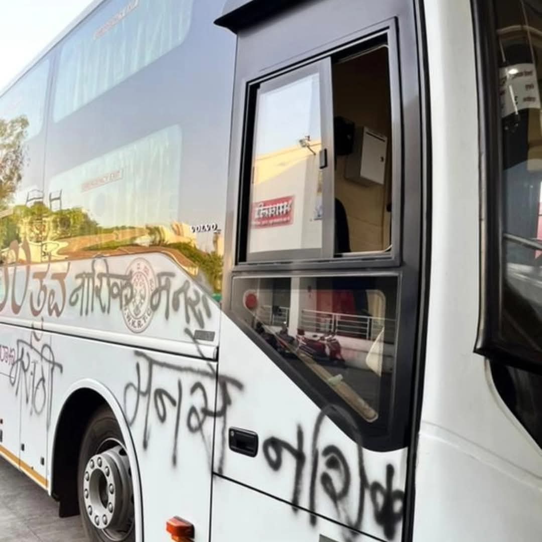ಕನ್ನಡ ಬೋರ್ಡ್ಗೂ ಕಪ್ಪು ಮಸಿ ಬಳಿದು ಮನಸೇ ಕಾರ್ಯಕರ್ತರು ಉದ್ಧಟತನ ಮೆರೆದಿದ್ದಾರೆ. ಮರಾಠಿ ಭಾಷೆಯಲ್ಲಿ ಬಸ್ ಮೇಲೆ ಮನಸೆ ಎಂದು ಬರೆದು ಪುಂಡಾಟ ಮೆರೆದಿದ್ದಾರೆ. 'ಅಯ್ಯೋ ದೇವರೇ ..ನಮ್ಮ ಕಿತ್ತೂರು ಕರ್ನಾಟಕದ ಏಕೈಕ ಅಲ್ಟ್ರಾ ಲಕ್ಸುರಿ ಬಸ್ ( ಬೆಳಗಾವಿ - ನಾಶಿಕ - ಬೆಳಗಾವಿ) ನ ಹಾಳ್ ಮಾಡಿ ಬಿಟ್ರಲ್ಲ ಪಾಪಿಗಳು. ದಯವಿಟ್ಟು ಮಹಾರಾಷ್ಟ್ರಕ್ಕೆ ಹೋಗುವ ಎಲ್ಲಾ ಪ್ರೀಮಿಯಂ ಬಸ್ ಸೇವೆ ಕೂಡಲೇ ನಿಲ್ಲಿಸಿ' ಎಂದು ಕನ್ನಡಿಗರು ಮನವಿ ಮಾಡಿದ್ದಾರೆ.