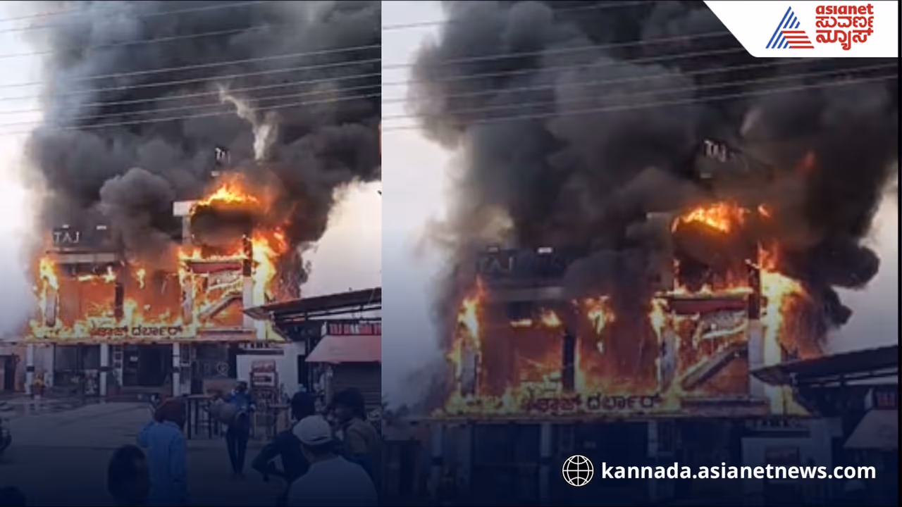 ತುಮಕೂರು (ಫೆ.25): ತುಮಕೂರು ಜಿಲ್ಲೆಯ ಕುಣಿಗಲ್ ತಾಲ್ಲೂಕಿನ ನಾಗೇಗೌಡನಪಾಳ್ಯದಲ್ಲಿ ಇಂದು ಸಂಜೆ ಭೀಕರ ಅಗ್ನಿ ಅವಘಡ ಸಂಭವಿಸಿದೆ. ಬೆಂಗಳೂರು-ಮಂಗಳೂರು ರಾಷ್ಟ್ರೀಯ ಹೆದ್ದಾರಿ 75ರ ಪಕ್ಕದಲ್ಲೇ ಇರುವ 'ತಾಜ್ ದರ್ಬಾರ್' ಹೋಟೆಲ್ನಲ್ಲಿ ಸಂಜೆ ಸುಮಾರು 5:30ರ ವೇಳೆಗೆ ಏಕಾಏಕಿ ಬೆಂಕಿ ಕಾಣಿಸಿಕೊಂಡಿದೆ. ಕ್ಷಣಾರ್ಧದಲ್ಲಿ ಇಡೀ ಹೋಟೆಲ್ ಆವರಿಸಿದ ಬೆಂಕಿಯ ಕೆನ್ನಾಲಿಗೆ ಕಟ್ಟಡವೇ ಸುಟ್ಟು ಕರಕರಲಾಗಿದೆ.