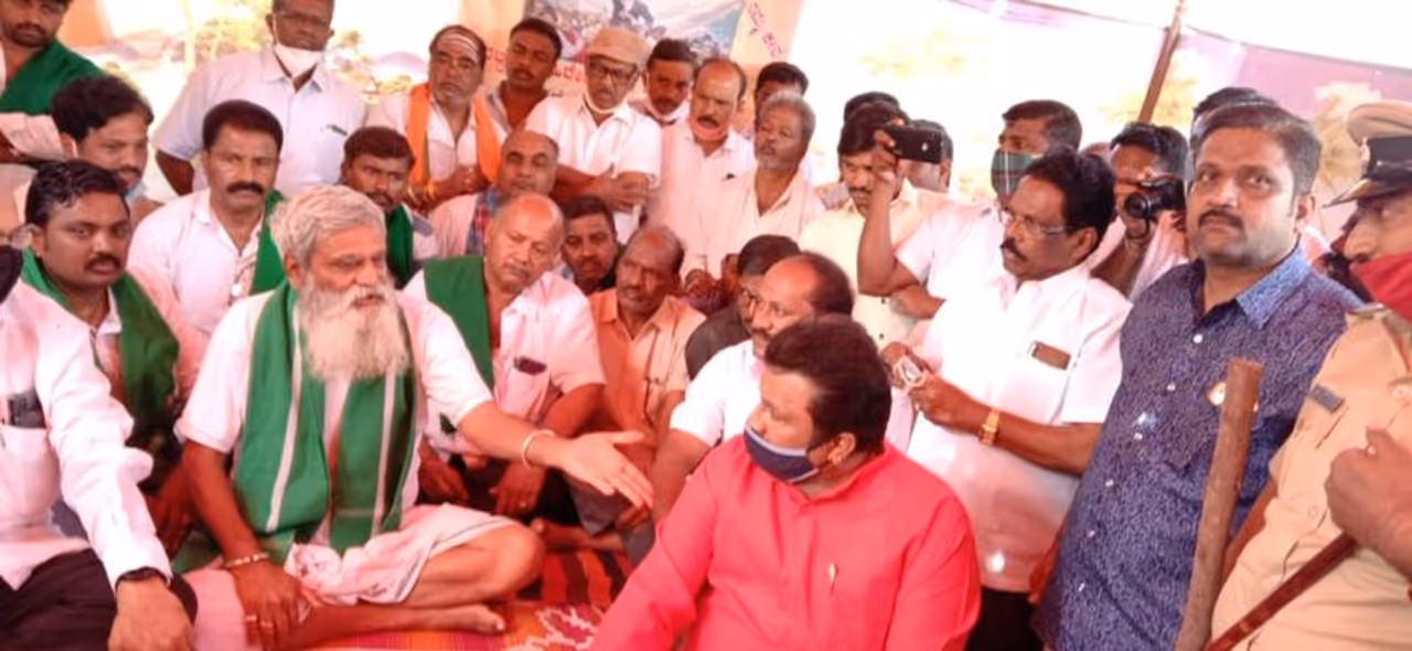ಬಿ.ಡಿ. ಹಿರೇಮಠ ಸ್ಥಳಕ್ಕೆ ಭೇಟಿ ನೀಡಿದ ಕೃಷಿ ಸಚಿವ ಬಿ.ಸಿ. ಪಾಟೀಲ| ರಟ್ಟೀಹಳ್ಳಿಯ ಭಗತ್ಸಿಂಗ್ ವೃತ್ತದಲ್ಲಿ ಉಡುಗಣಿ ತಾಳಗುಂದ ನೀರಾವರಿ ಯೋಜನೆ ವಿರೋಧಿಸಿ ಉಪವಾಸ ನಡೆಸುತ್ತಿರುವ ಸಾಮಾಜಿಕ ಹೋರಾಟಗಾರ ಬಿ.ಡಿ. ಹಿರೇಮಠ| ಈ ಯೋಜನೆಯಿಂದ ನಮ್ಮ ರಾಜ್ಯದ ರೈತರಿಗೆ ಉಪಯೋಗವಾಗುತ್ತದೆಯೇ ಹೊರತು ಬೇರೆಯವರಿಗಲ್ಲ: ಪಾಟೀಲ|