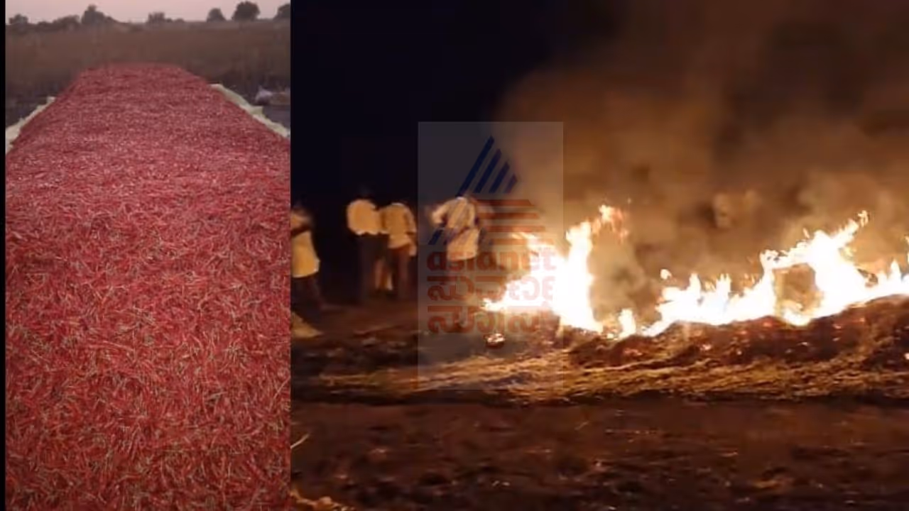 ರೈತ ಮೌಲಪ್ಪ ನಾಯಕರ 37 ಕ್ವಿಂಟಲ್ಗೂ ಅಧಿಕ ಮೆಣಸಿನಕಾಯಿ ರಾಶಿಗೆ ಕಿಡಿಗೇಡಿಗಳು ಪೆಟ್ರೋಲ್ ಸುರಿದು ಬೆಂಕಿ ಹಚ್ಚಿದ್ದಾರೆ. ಈ ಘಟನೆಯಿಂದಾಗಿ ರೈತರಿಗೆ ಅಂದಾಜು ಏಳು ಲಕ್ಷ ರೂಪಾಯಿ ನಷ್ಟವಾಗಿದೆ.