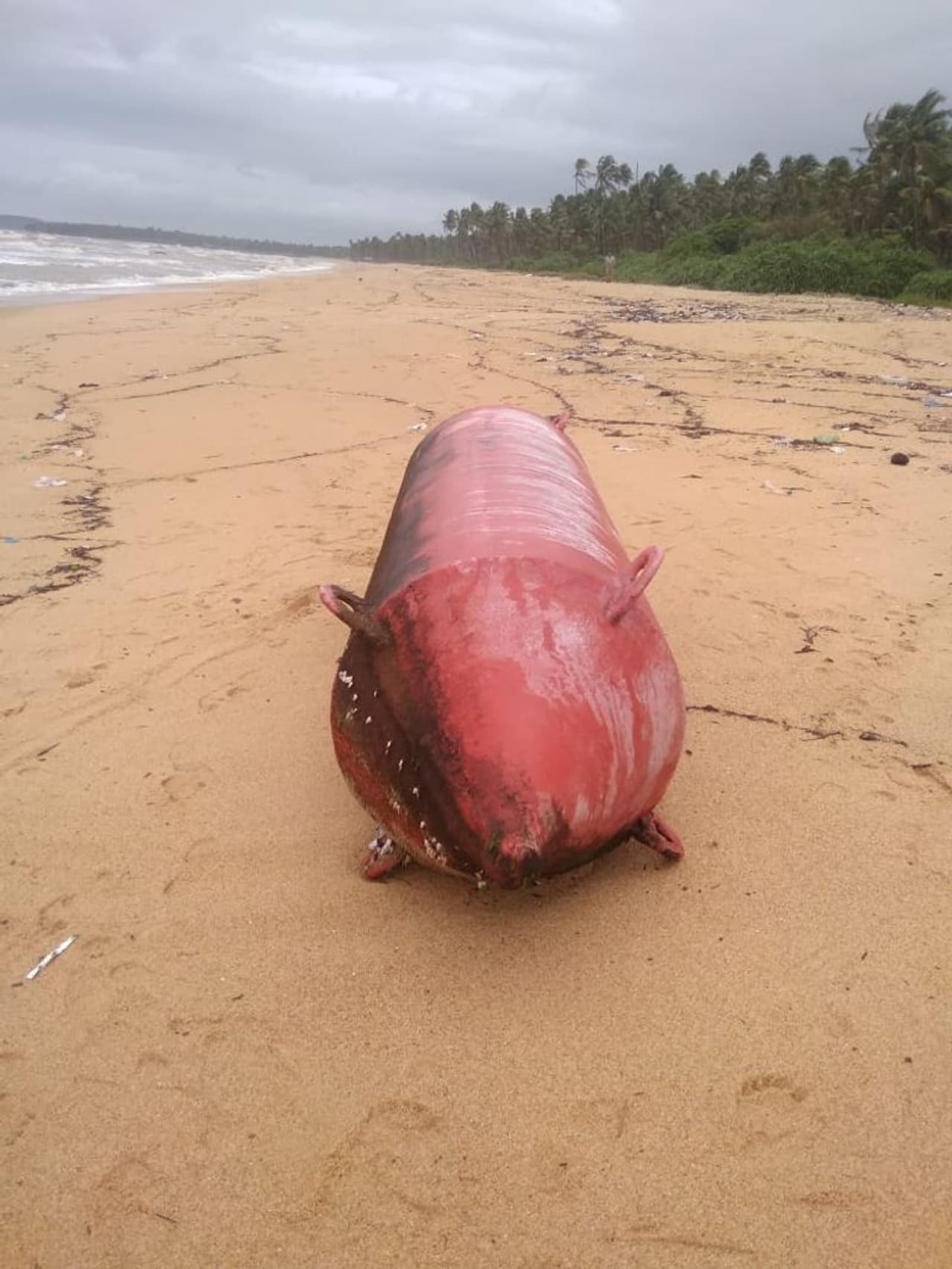 ಮಂಗಳವಾರ ಮುಂಜಾನೆ ಈ ಕಬ್ಬಿಣದ ಸಿಲಿಂಡರ್ನಂತಿರುವ ಈ ವಸ್ತುವನ್ನು ಗಮನಿಸಿದ ಸ್ಥಳೀಯರು ಕರಾವಳಿ ಕಾವಲು ಪಡೆ ಪೊಲೀಸರಿಗೆ ಮಾಹಿತಿ ನೀಡಿದ್ದಾರೆ. ಸ್ಥಳಕ್ಕೆ ಆಗಮಿಸಿದ ಪೊಲೀಸರು ಕ್ರೇನ್ ಮೂಲಕ ಅದನ್ನು ಅಲ್ಲಿಂದ ತೆಗೆದುಕೊಂಡು ಹೋಗಲು ಪ್ರಯತ್ನ ನಡೆಸಿದರು. ಆದರೆ ಅದು ಸಾಕಷ್ಟು ಉದ್ದ ಮತ್ತು ಭಾರವಿದ್ದುದರಿಂದ ಸಾಧ್ಯವಾಗಲಿಲ್ಲ.