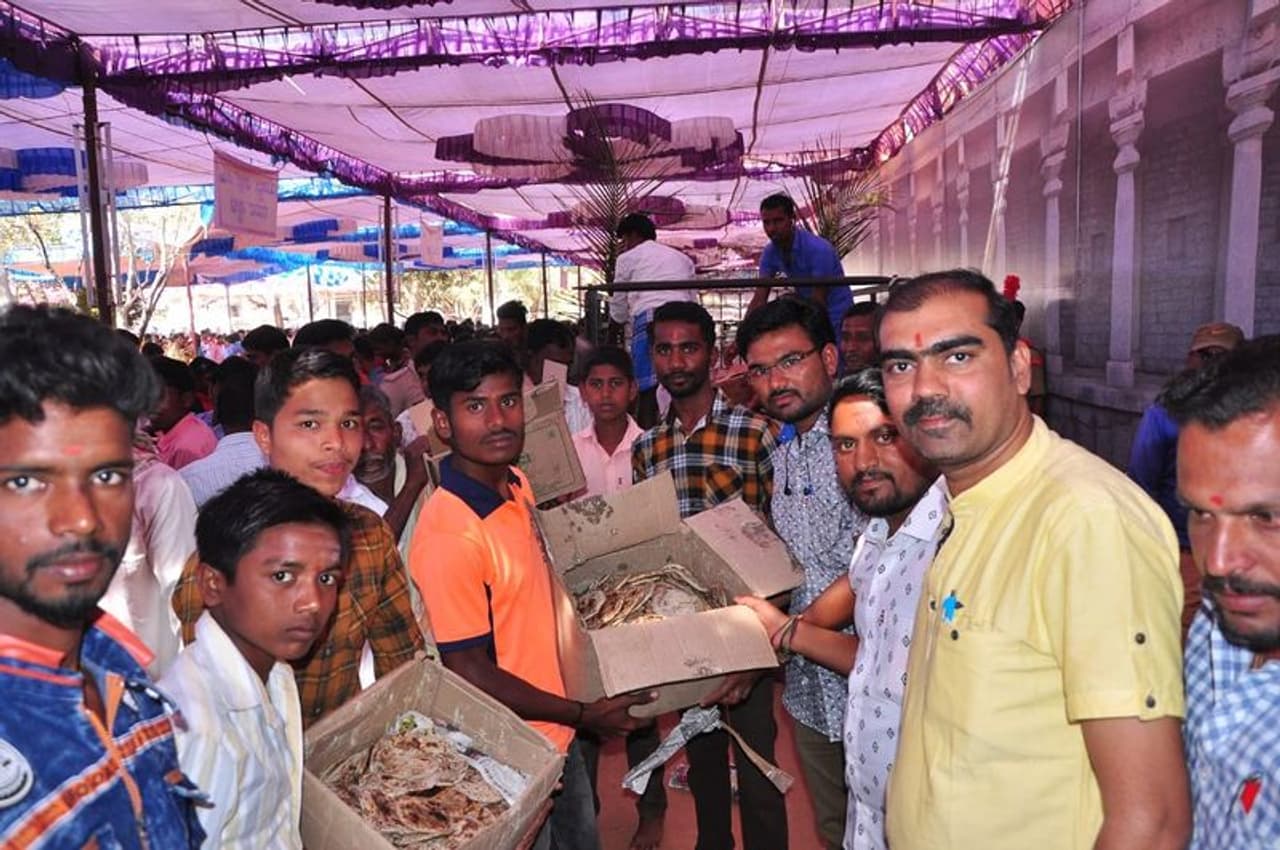 ಸುಮಾರು 3.5 ಕ್ವಿಂಟಲ್ ಬೆಲ್ಲ, ಅಷ್ಟೇ ಪ್ರಮಾಣದ ಶೇಂಗಾ, ಜೊತೆಗೆ 1 ಕ್ವಿಂಟಲ್ ಮೈದಾ ಹಿಟ್ಟು ಎಣ್ಣೆಯನ್ನು ಬಳಸಿ 150 ಜನ ಸ್ವಯಂಸೇವಕರು ನಿರಂತರವಾಗಿ 48 ಗಂಟೆಗಳ ಕಾಲ ನಿರಂತರವಾಗಿ ಹೋಳಿಗೆಯನ್ನು ಒತ್ತಿ (ಲಟ್ಟಿಸಿ), ಸುಟ್ಟು 1 ಲಕ್ಷ ಹೋಳಿಗೆ ಸಿದ್ಧಪಡಿಸಿದ್ದಾರೆ. ಎರಡು ದಿನಗಳ ಕಾಲ ಪ್ರತ್ಯೇಕ ತಂಡವಾಗಿ ಸಿದ್ಧತೆಯ ಕಾರ್ಯ ಕೈಗೊಂಡಿದ್ದಾರೆ. ಇದಕ್ಕಾಗಿಯೇ ಊರಿನಲ್ಲಿ ದೊಡ್ಡ ಪೆಂಡಾಲ್ ಹಾಕಲಾಗಿದ್ದು, ಗ್ರಾಮಸ್ಥರೆಲ್ಲ ಇದೊಂದು ಅಜ್ಜನ ಸೇವೆ ಎಂದು ಉತ್ಸಾಹದಿಂದ ಭಾಗಿಯಾಗಿದ್ದರು.