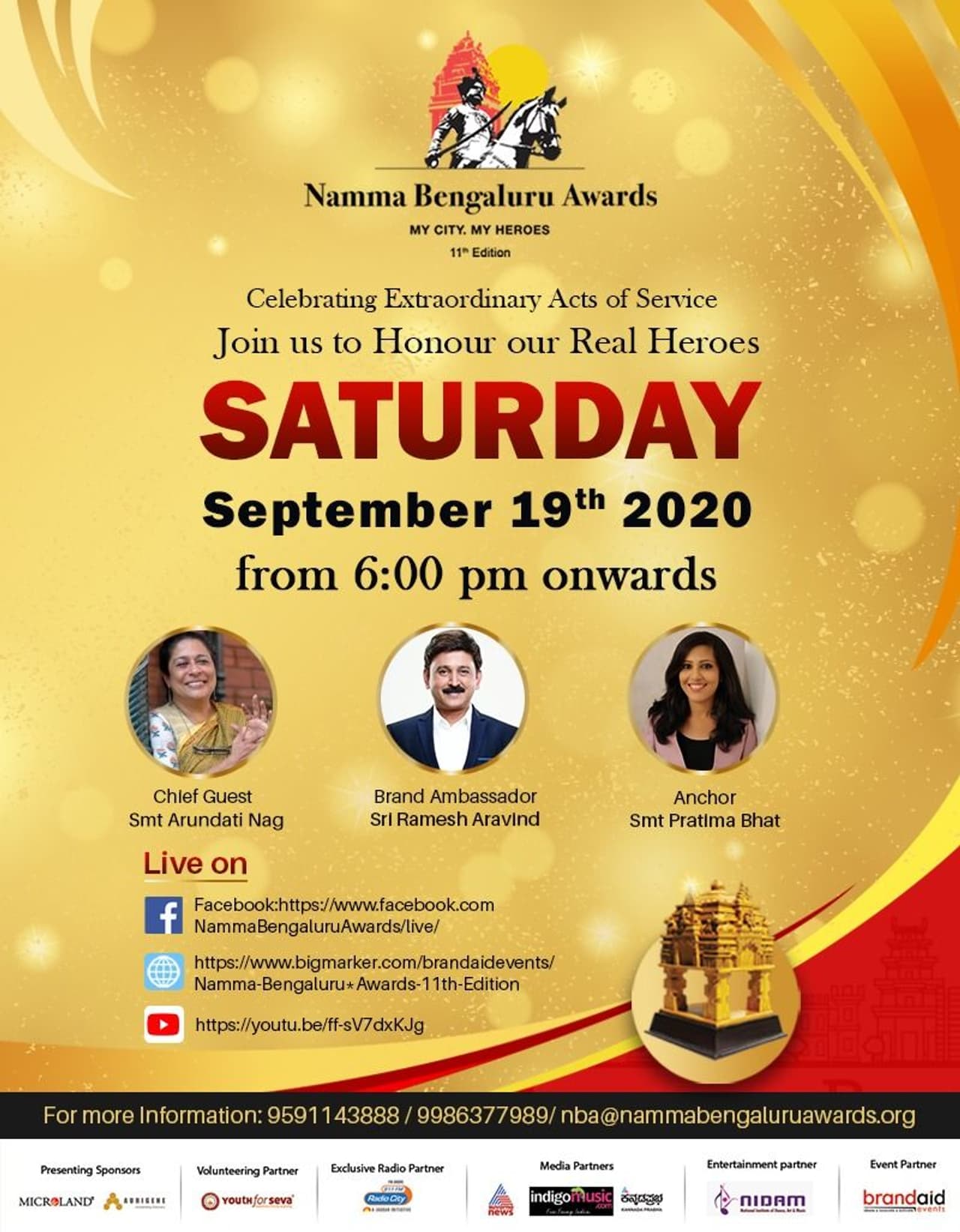ಹಲವು ಪ್ರಥಮಗಳನ್ನು ತನ್ನ ಮುಡಿಗೆ ಏರಿಸಿಕೊಳ್ಳುತ್ತಿರುವ ನಮ್ಮ ಬೆಂಗಳೂರು ಪ್ರಶಸ್ತಿಗಳ ರಾತ್ರಿ ಈ ಬಾರಿ ಸಂಪೂರ್ಣವಾಗಿ ವರ್ಚುವಲ್ ಆಗಿ ನಡೆಯಲಿದೆ.