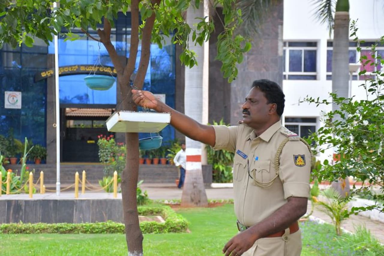 ಜಿಲ್ಲಾ ಪೊಲೀಸ್ ವರಿಷ್ಠಾಧಿಕಾರಿ ಕಚೇರಿಯ ಗಿಡಮರಗಳಲ್ಲಿ 150 ಕ್ಕೂ ಹೆಚ್ಚು ಮಡಿಕೆಯ ಮುಚ್ಚಳಗಳನ್ನು ಕಟ್ಟಿದ್ದಾರೆ. ಒಂದು ಮರದಲ್ಲಿ ಎರಡರಿಂದ ನಾಲ್ಕು ಮಡಿಕೆ ಮುಚ್ಚಳ ಕಟ್ಟಿ ಬೆಳಗ್ಗೆ ಮತ್ತು ಸಂಜೆ ನವಣೆ, ಕಡಲೆ ಸೇರಿದಂತೆ ನಾನಾ ಆಹಾರ ಮತ್ತು ನೀರು ಹಾಕಲಾಗುತ್ತಿದೆ. ತಮ್ಮ ಕರ್ತವ್ಯ ಇಲ್ಲದ ದಿನದಲ್ಲೂ ಸಹ ಕಚೇರಿಗೆ ಆಗಮಿಸಿ ಪಕ್ಷಿಗಳ ದಾಹ ನೀಗಿಸುತ್ತಿರುವುದನ್ನು ಕಂಡ ಎಸ್ಪಿ ಅರುಣಾಂಗ್ಷು ಗಿರಿಯವರು ಮೆಚ್ಚುಗೆ ವ್ಯಕ್ತಪಡಿಸಿದ್ದಾರೆ.