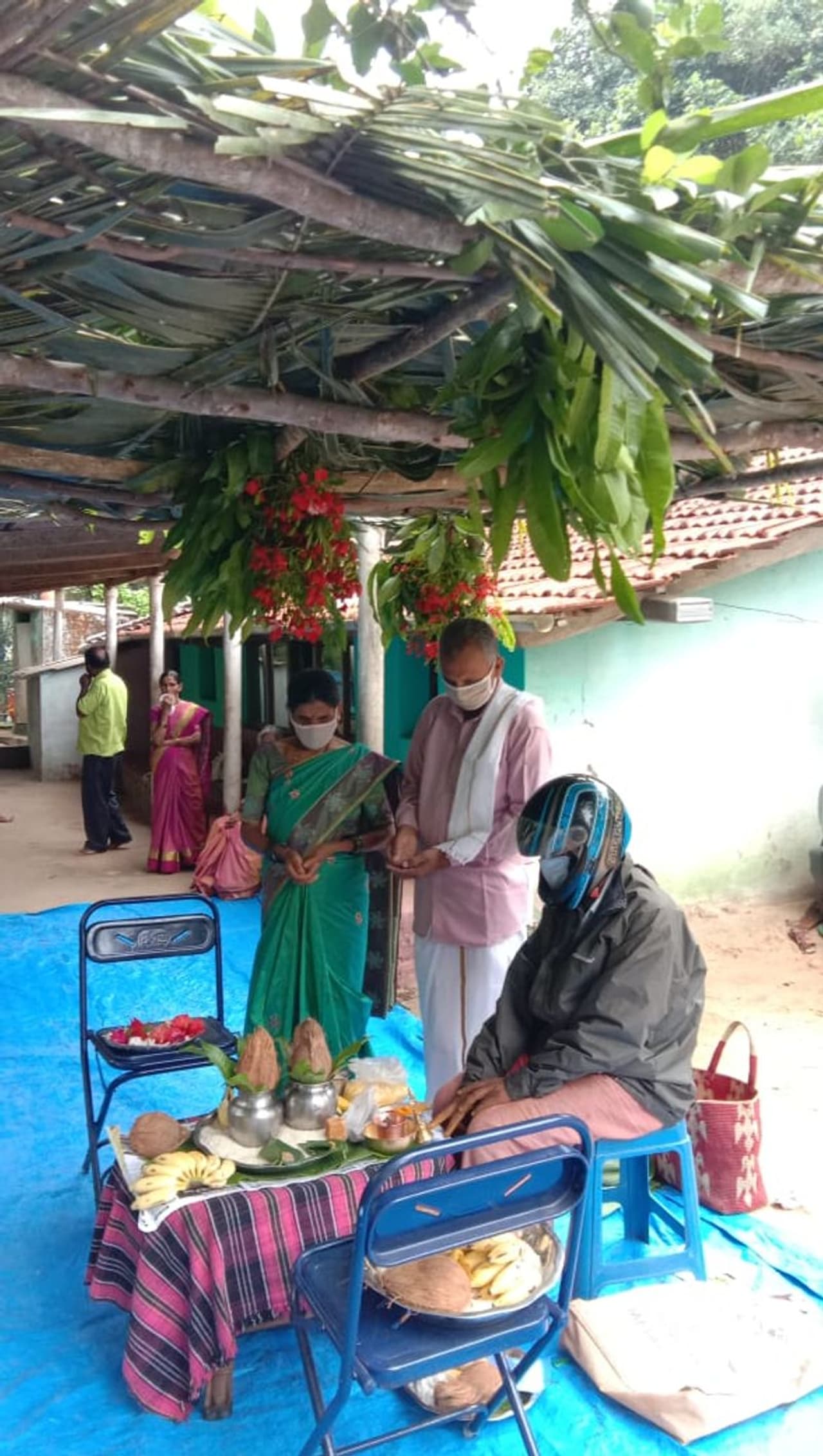 ಆದರೆ, ಇದಕ್ಕೆ ಅಪವಾದ ಎಂಬಂತೆ ಮದುವೆ ಮಾಡಿಸುವ ಪುರೋಹಿತರೊಬ್ಬರು ತಮ್ಮ ದ್ವಿಚಕ್ರ ವಾಹನದಲ್ಲಿ ಬಂದು ತಲೆಯ ಮೇಲಿದ್ದ ಹೆಲ್ಮೆಟ್ ಅನ್ನು ತೆಗೆಯದೆ ಮಾಸ್ಕ್ ಬಿಚ್ಚದೆ ಸಾಮಾಜಿಕ ಅಂತರ ಕಾಯ್ದುಕೊಂಡು ಶುಭ ಕಾರ್ಯವನ್ನು ನಡೆಸಿಕೊಟ್ಟು ಮಹಾಮಾರಿ ಕೊರೋನಾ ಸೋಂಕಿನ ಬಗ್ಗೆ ಯಾವ ರೀತಿ ಮುಂಜಾಗ್ರತೆ ವಹಿಸಬೇಕು ಎಂಬುದನ್ನು ತೋರಿಸಿ ಇತರರಿಗೆ ಮಾದರಿಯಾಗಿದ್ದಾರೆ.