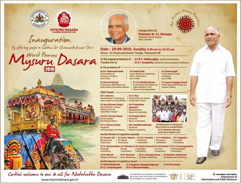 ನಾಡಹಬ್ಬ ದಸರಾಗೆ ಚಾಲನೆ: ಭೈರಪ್ಪ ಭಾ಼ಷಣದ ಮಾತುಗಳಿವು