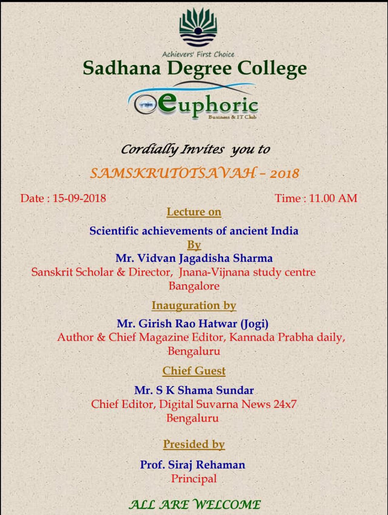 ಭಾರತದ ವೈಜ್ಞಾನಿಕ ಸಾಧನೆಗಳ ಬಗ್ಗೆ ಒಂದೆಲ್ಲಾ ಒಂದು ಕಡೆ ಕೇಳುತ್ತಲೇ ಇರುತ್ತವೆ. ಆದರೆ ಸಂಪೂರ್ಣ ವಿವರ ನಮಗೆ ಗೊತ್ತಿರುವುದಿಲ್ಲ. ಇಲ್ಲೊಂದು ಕಾರ್ಯಕ್ರಮ ಭಾರತದ ವೈಜ್ಞಾನಿಕ ಸಾಧನೆಗಳ ಮೇಲೆ ಸಂಪೂರ್ಣ ಬೆಳಕು ಚೆಲ್ಲುವ ಕೆಲಸ ಮಾಡಲಿದೆ. ಸಂಸ್ಕೃತ ಭಾಷೆಯ ಅರಿವಿನಲ್ಲಿ ಗೊತ್ತಿರದ ಅನೇಕ ವಿಚಾರಗಳನ್ನು ನಮ್ಮ ಮುಂದೆ ಇಡಲಿದೆ.