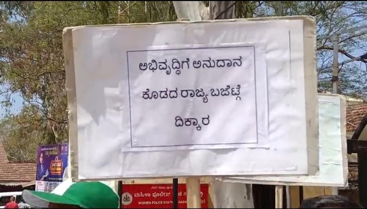 ಜೆಡಿಎಸ್ ರಾಜ್ಯ ವಕ್ತಾರ ವೆಂಕನಗೌಡ ಗೋವಿಂದಗೌಡ ನೇತೃತ್ವದಲ್ಲಿ ವಿನೂತನ ಪ್ರತಿಭಟನೆ ನಡೆಸಲಾಯ್ತು. ಪ್ರತಿಭಟನೆ ವೇಳೆ ಕಾರ್ಯಕರ್ತರು ಕೈಯಲ್ಲಿ ಹಿಡಿದಿದ್ದ ಫಲಕಗಳಲ್ಲಿ ತಪ್ಪಾದ ಕನ್ನಡ ಪದಗಳನ್ನ ಬಳಕೆ ಮಾಡಲಾಗಿದ್ದು, ಕನ್ನಡ ಅಭಿಮಾಗಳ ಆಕ್ರೋಶಕ್ಕೆ ಗುರಿಯಾಗಬೇಕಾಯಿತು. 'ಗದಗ ದ್ಧಿವೃಭಿಅ' ಎಂಬ ಅರ್ಥವೇ ಇಲ್ಲದ ಬೋರ್ಡ್ ಹಿಡಿದು ಜೆಡಿಎಸ್ ಕಾರ್ಯಕರ್ತರು ಹೆಜ್ಜೆ ಹಾಕಿದ್ದು ವಿಚಿತ್ರವಾಗಿ ಕಂಡು ಬಂತು ಇನ್ನುಳಿದಂತೆ 'ನಮ್ಮ ಜಿಲ್ಲೆಯ ಹಣ ಬೇರೆ ಕೆಲಸಕ್ಕೆ ಬಳಸಿದ್ದು ಅಪರಾಧ' ಎನ್ನುವ ಬೋರ್ಡ್ ನಲ್ಲಿ 'ಬಳಿಸಿದು', 'ಕೆಲ್ಸ' ಅಂತೆಲ್ಲ ಬರೆಯಲಾಗಿತ್ತು.