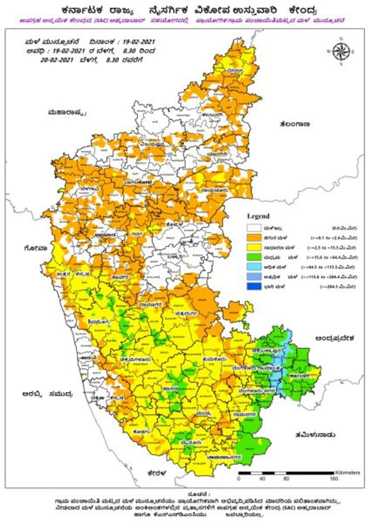 ಕರ್ನಾಟಕದ ಹಲವು ಜಿಲ್ಲೆಗಳಲ್ಲಿ ಮಳೆಯಾಗಿದೆ. ಅಕಾಲಿಕ ಮಳೆ ಬೆಳೆ ಹಾನಿಯನ್ನು ಮಾಡಿದೆ. ಕೊಡಗು, ಹಾಸನ, ಚಿತ್ರದುರ್ಗ, ಬೆಂಗಳೂರು ಮತ್ತು ದಕ್ಷಿಣ ಕನ್ನಡ ಜಿಲ್ಲೆಯಲ್ಲಿಯೂ ಮಳೆಯಾದ ವರದಿಗಳು ಬಂದಿವೆ.