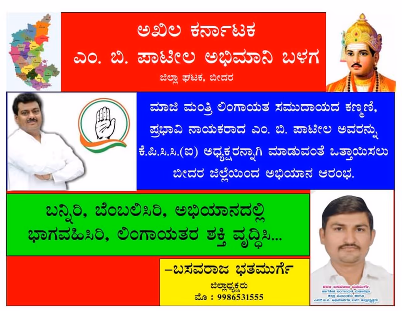 ಎಂ.ಬಿ.ಪಾಟೀಲ್ ಅವರಿಗೆ ಕೆಪಿಸಿಸಿ ಅಧ್ಯಕ್ಷ ಸ್ಥಾನ ನೀಡುವಂತೆ ಅವರ ಅಭಿಮಾನಿಗಳು ಗೋಡೆ ಹಾಗೂ ಕಾರುಗಳ ಮೇಲೆ ಬಿತ್ತಿ ಪತ್ರಗಳ ಅಂಟಿಸಿ ಅಭಿಯಾನ ಮಾಡುತ್ತಿದ್ದಾರೆ. ಉಪಚುನಾವಣೆಯಲ್ಲಿ ಕಾಂಗ್ರೆಸ್ ಪಕ್ಷ ಹೀನಾಯವಾಗಿ ಸೋಲು ಕಂಡಿದ್ದರಿಂದ ನೈತಿಕ ಹೊಣೆ ಹೊತ್ತು ಕೆಪಿಸಿಸಿ ಅಧ್ಯಕ್ಷ ದಿನೇಶ್ ಗುಂಡೂರಾವ್ ಹಾಗೂ ಶಾಸಕಾಂಗ ಪಕ್ಷದ ಸ್ಥಾನಕ್ಕೆ ಮಾಜಿ ಮುಖ್ಯಮಂತ್ರಿ ಸಿದ್ದರಾಮಯ್ಯ ರಾಜೀನಾಮೆ ಸಲ್ಲಿಸಿದ್ದರು. ಆದರೆ, ಇವರಿಬ್ಬರ ರಾಜೀನಾಮೆಯನ್ನು ಕಾಂಗ್ರೆಸ್ ಹೈಕಮಾಂಡ್ ಇನ್ನೂ ಅಂಗೀಕರಿಸಿಲ್ಲ. ಆದರೂ ಕೆಪಿಸಿಸಿ ಅಧ್ಯಕ್ಷ ಸ್ಥಾನಕ್ಕೆ ಮಾಜಿ ಸಚಿವ ಡಿ.ಕೆ. ಶಿವಕುಮಾರ್ ಹಾಗೂ ಎಂ. ಬಿ.ಪಾಟೀಲ್ ನಡುವೆ ಭಾರಿ ಫೈಟ್ ನಡೆಯುತ್ತಿದೆ.