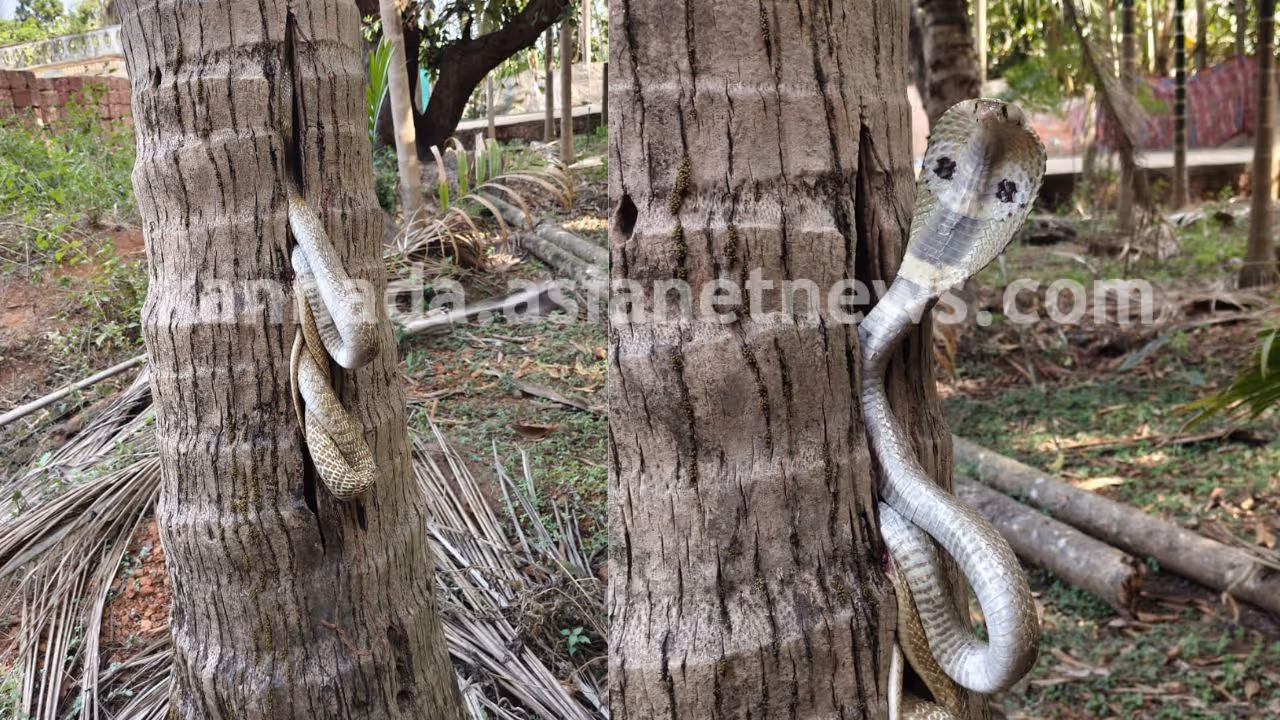 ಉತ್ತರ ಕನ್ನಡ ಜಿಲ್ಲೆಯಲ್ಲಿ ಎರಡು ಪ್ರತ್ಯೇಕ ಘಟನೆಗಳು ನಡೆದಿವೆ. ಅಂಕೋಲಾದಲ್ಲಿ ತೆಂಗಿನ ಮರದ ಪೊಟರೆಯಲ್ಲಿ ಸಿಲುಕಿದ್ದ ನಾಗರ ಹಾವನ್ನು ರಕ್ಷಿಸಲಾಗಿದ್ದರೆ, ಕುಮಟಾದಲ್ಲಿ ಸಣ್ಣ ಹಾವನ್ನು ನುಂಗಿದ್ದ ಬೃಹತ್ ಕಾಳಿಂಗ ಸರ್ಪವನ್ನು ರಕ್ಷಿಸಿ ಕಾಡಿಗೆ ಬಿಡಲಾಗಿದೆ.