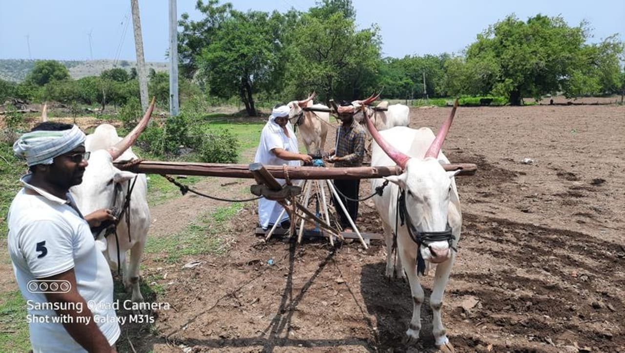 ಸ್ವತಃ ನೇಗಿಲು ಹೂಡಿ ಬಿತ್ತನೆ ಮಾಡಿದ ಮಠಾಧೀಶರು..!