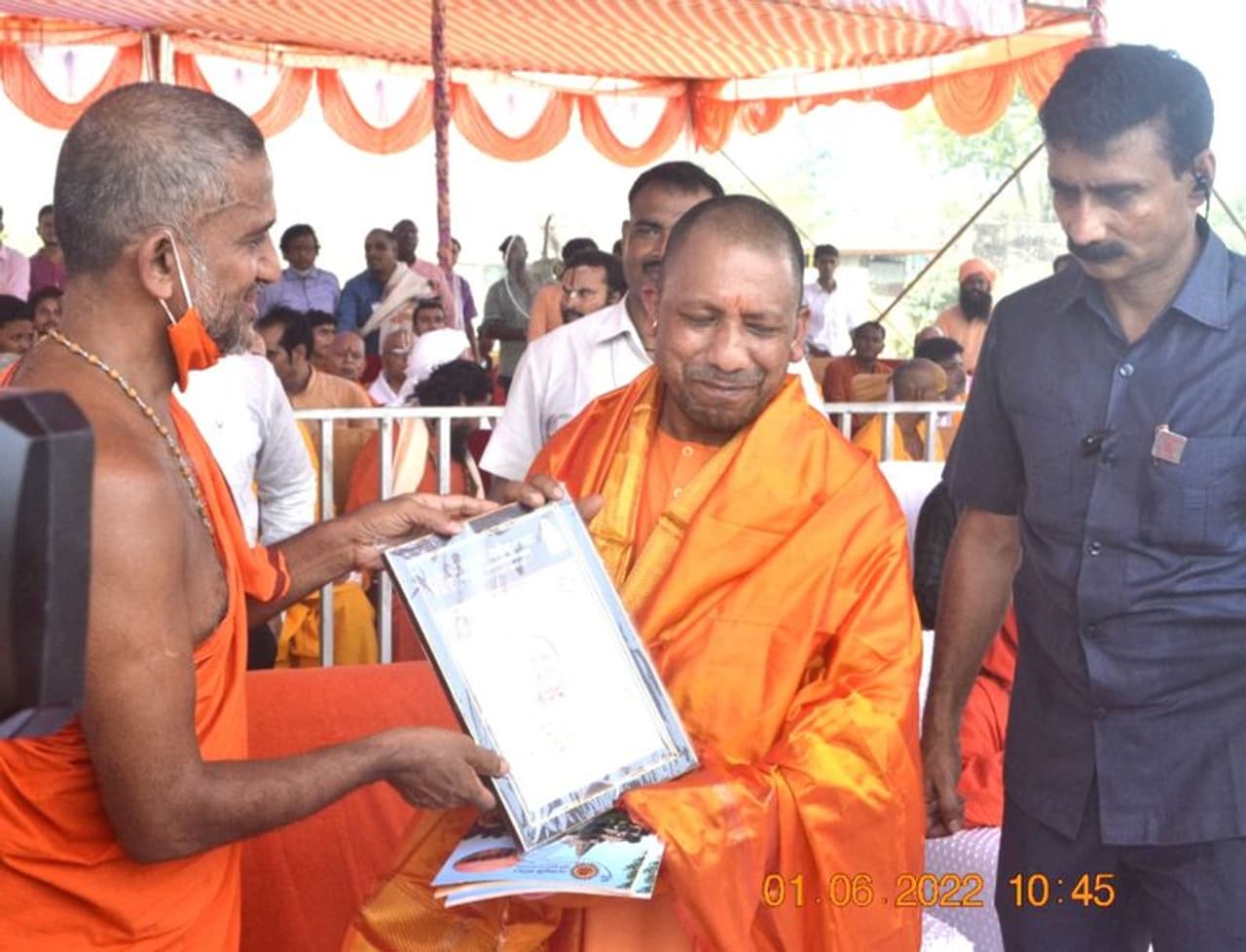 ಪೇಜಾವರ ಮಠದ ಶ್ರೀ ವಿಶ್ವಪ್ರಸನ್ನ ತೀರ್ಥರು ಗರ್ಭಗುಡಿ ಶಿಲಾನ್ಯಾಸ ಸಂದರ್ಭದಲ್ಲಿ ಹಾಜರಿದ್ದು ಶ್ರೀ ವಿಷ್ಣು ಸಹಸ್ರನಾಮ ಪಾರಾಯಣಗೈದರು. ಉಡುಪಿ ಶ್ರೀ ಕೃಷ್ಣ ದೇವರ ಪ್ರಸಾದ ಹಾಗೂ ಸಾಲಿಗ್ರಾಮ ಶಿಲೆಗಳು ಮತ್ತು ನವರತ್ನ, ಸುವರ್ಣ ನಾಣ್ಯಗಳನ್ನು ಭೂಮಿಗೆ ಅರ್ಪಿಸಿದರು. ಇದೇ ವೇಳೆ ಯೋಗಿ ಆದಿತ್ಯನಾಥ್ ಮತ್ತು ಕೇಶವಪ್ರಸಾದ್ ಮೌರ್ಯ ಅವರನ್ನು ಸ್ವಾಮೀಜಿ ಸನ್ಮಾನಿಸಿದರು.