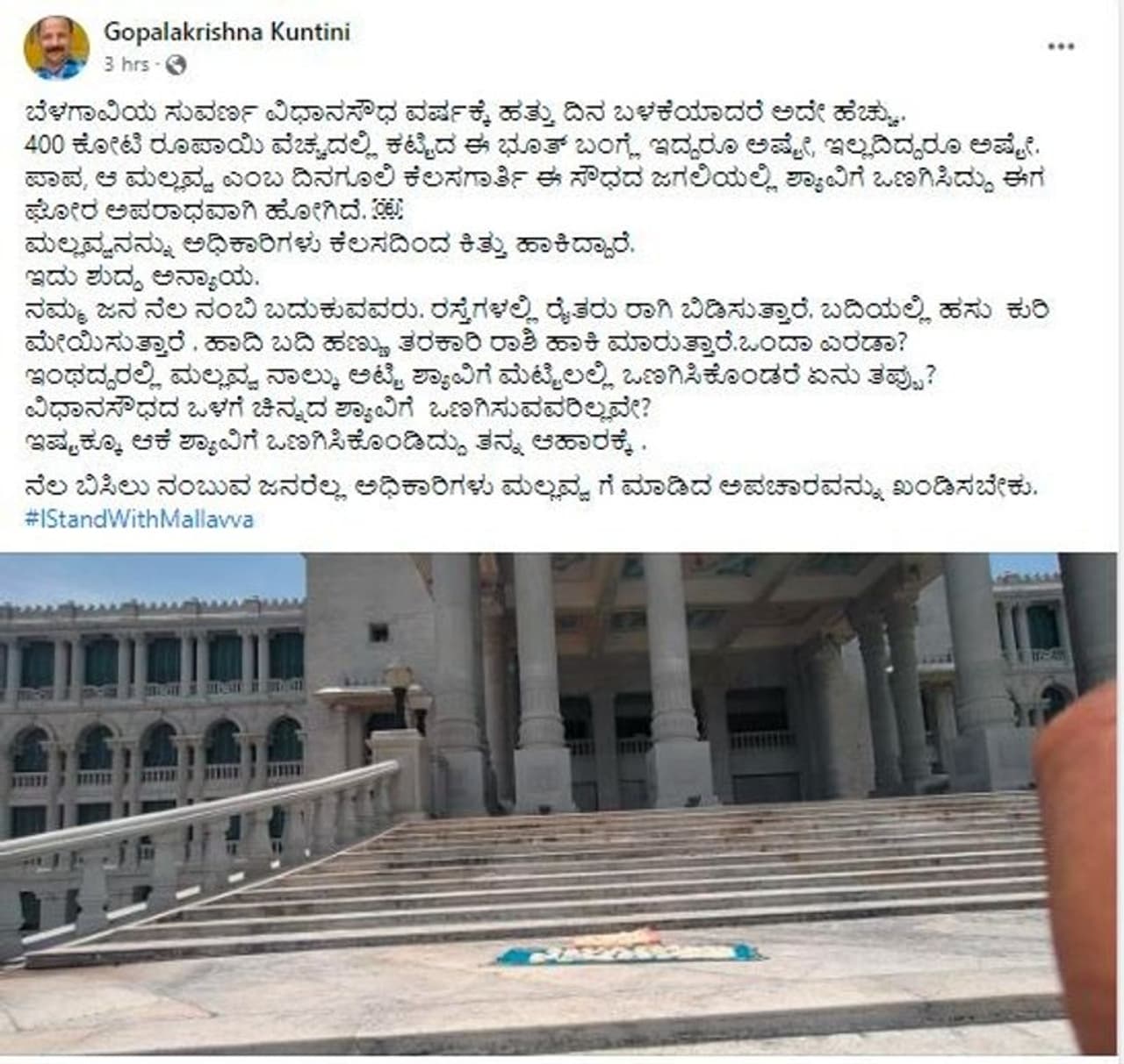 ಇನ್ನು ಈ ಬೆನ್ನಲ್ಲೇ ಸಾಮಾಜಿಕ ಜಾಲತಾಣಗಳಲ್ಲಿ ಆಕ್ರೋಶ ವ್ಯಕ್ತವಾಗಿದ್ದು, ಕಾರ್ಮಿಕ ಮಹಿಳೆಯನ್ನು ಅಧಿಕಾರಿಗಳು ಕೆಲಸದಿಂದ ಕಿತ್ತು ಹಾಕಿರುವುದು ಅನ್ಯಾಯ ಎಂಬ ಅಭಿಪ್ರಾಯ ವ್ಯಕ್ತವಾಗಿದೆ. ಈ ಬಗ್ಗೆ ಕೆಲ ನಟ್ಟಿಗರು #IStandWithMallavva ಹ್ಯಾಶ್ಟ್ಯಾಗ್ ಮೂಲಕ ಕಾರ್ಮಿಕ ಮಹಿಳೆ ಬೆಂಬಲಕ್ಕೆ ನಿಂತಿದ್ದಾರೆ.