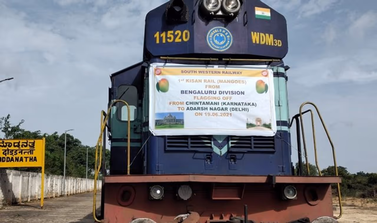 ಕರ್ನಾಟಕದ ಮೊದಲ ಕಿಸಾನ್ ರೈಲಿಗೆ ಚಾಲನೆ ಕೋಲಾರದಿಂದ ರಸಭರಿತ ಮಾವು ಹೊತ್ತು ಸಾಗಿದ ರೈಲು ಕೋಲಾರದ ಮಾವಿಗೆ ದೆಹಲಿಯಲ್ಲಿ ಭಾರಿ ಬೇಡಿಕೆ
