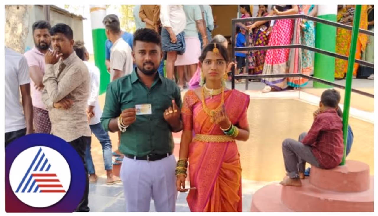 ಕೊಪ್ಪಳ ಲೋಕಸಭಾ ಕ್ಷೇತ್ರದ ವ್ಯಾಪ್ತಿಗೆ ಬರುವ ಸಿರುಗುಪ್ಪ ತಾಲೂಕಿನ ರಾರಾವಿ ಗ್ರಾಮದಲ್ಲಿ ಮದುವೆ ಬಳಿಕ ಮತದಾನ ಕೇಂದ್ರಕ್ಕೆ ಬಂದು ವಧು ಮಮತಾ ಹಾಗೂ ವರ ನನ್ನೆಪ್ಪ ಮತದಾನ ಮಾಡಿದರು.