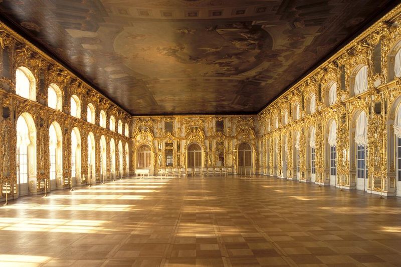 ರಷ್ಯಾದ ಮಹಾನ್ ನಾಯಕರಲ್ಲಿ ಒಬ್ಬರಾದ ಪೀಟರ್ ದಿ ಗ್ರೇಟ್ ಒಮ್ಮೆ ಫ್ರಾನ್ಸ್ ವೆರ್ಸಲ್ಲಿಸ್ ಅರಮನೆಯನ್ನು ಕಂಡು ತಾನೂ ಅದಕ್ಕಿಂತ ಸುಂದರ ಐಷಾರಾಮಿ ಅರಮನೆಯನ್ನು ಮಾಡಬೇಕೆಂದುಕೊಂಡು ಮಾಡಿದ್ದೇ ಇಲ್ಲಿನ ಗ್ರಾಂಡ್ ಪ್ಯಾಲೇಸ್. ಇಲ್ಲಿ ಮುಟ್ಟಿದ್ದೆಲ್ಲಾ ಚಿನ್ನ. ಗೋಡೆಯ ಕೆಂಪು ಬಣ್ಣ ಹವಳ ಅರೆದು ಹಚ್ಚಿದ್ದು...! ಹಾಗೆಯೇ ಅಮೂಲ್ಯ ಹರಳುಗಳನ್ನು ಅರೆದು ಮಾಡಿದ ಗೋಡೆಗಳೂ ಇಲ್ಲಿವೆ.