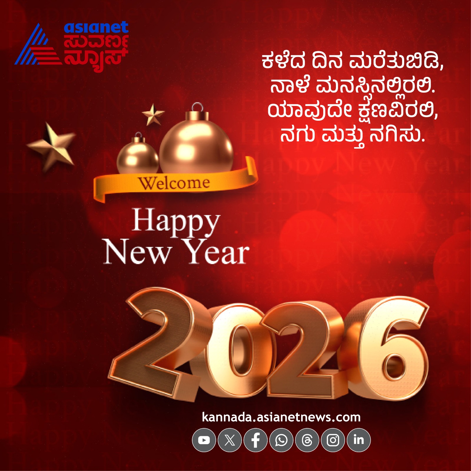 *ಹೊಸ ಬೆಳಗು ಹೊಸ ಕಿರಣದೊಂದಿಗೆ ಬಂದಿದೆ. ಹೊಸ ದಿನವು ಸುಂದರ ನಗುವಿನೊಂದಿಗೆ ಬಂದಿದೆ. ಹ್ಯಾಪಿ ನ್ಯೂ ಇಯರ್ 2026!