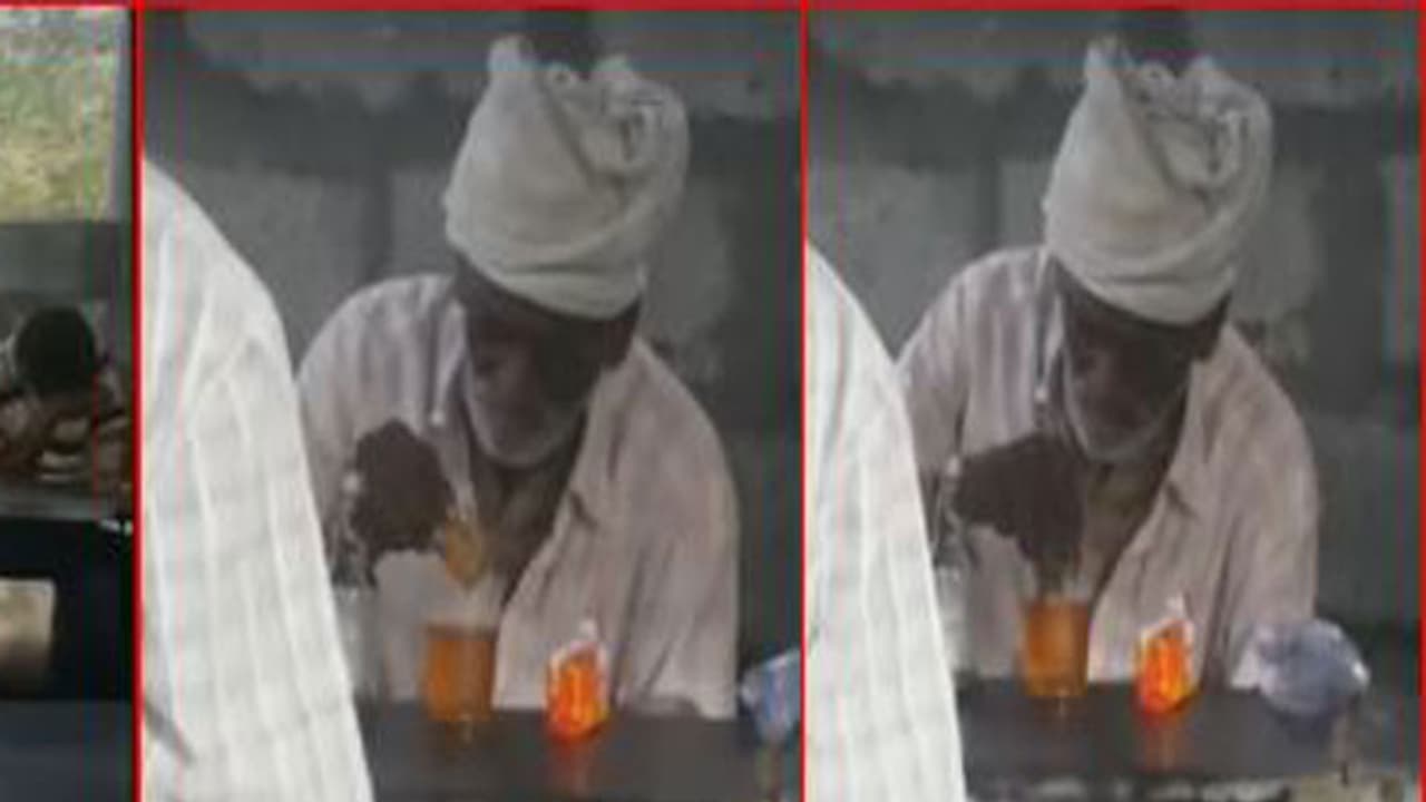 ವಿಡಿಯೋ ನೋಡಿ ಈ ವೃದ್ಧ ಢಾಬಾ ಒಂದರಲ್ಲಿ ಕುಳಿತು ಬಿಸ್ಕೆಟ್ ತಿನ್ನುವುದು ತಿಳಿದು ಬರುತ್ತದೆ. ಇವರ ಗ್ಲಾಸ್'ನಲ್ಲಿ ಸ್ವಲ್ಪ ಶರಾಬು ಕಾಣುತ್ತಿದೆ ಅಲ್ಲದೇ ಅವರಿದ್ದ ಟೇಬಲ್ ಮೇಲೆ ಮದ್ಯದ ಬಾಟಲ್ ಇರುವುದು ಕಂಡು ಬರುತ್ತದೆ. ಇನ್ನು ಈ ವಿಡಿಯೋ ಕೆಳಗೆ ಕಮೆಂಟ್ ಮಾಡಿರುವ ವೀಕ್ಷಕರು ಈ ವೃದ್ಧ ಮದ್ಯದ ಬಾಟಲಿಯಲ್ಲಿ ಮದ್ಯದಂತೆ ಕಾಣುವ ಬಣ್ಣದ ನೀರನ್ನು ತುಂಬಿಸಿರಬಹುದು ಎಂದಿದ್ದಾರೆ.