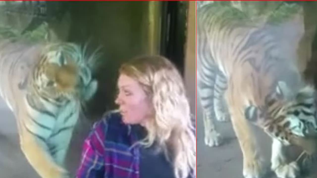 ಅಮೆರಿಕಾದ ಗರ್ಭಿಣಿ ಮಹಿಳೆ ಬ್ರಿಟ್ಟನಿ ಓಸ್ಬರ್ನ್ ಎಂಬಾಕೆ ಮೃಗಾಲಯವೊಂದಕ್ಕೆ ತನ್ನ ಗೆಳತಿಯೊಂದಿಗೆ ತೆರಳಿದ್ದಾಳೆ. ಈ ವೇಳೆ ಹುಲಿ ಬೋನಿನ ಹೊರಗಡೆ ಬ್ರಿಟ್ಟನಿ ಕುಳಿತಿದ್ದು, ಗೆಳತಿ ಈ ದೃಶ್ಯಗಳನ್ನು ಚಿತ್ರೀಕರಿಸುತ್ತಿದ್ದರು. ಇಷ್ಟರಲ್ಲೇ ಬೋನಿಗೆ ಅಳವಡಿಸಿದ್ದ ಗಾಜಿನ ಬಳಿ ಬಂದ ಹುಲಿ ಆಕೆಯನ್ನು ನೋಡಿ ಕೊಟ್ಟ ಪ್ರತಿಕ್ರಿಯೆಯೇ ಅತ್ಯಂತ ಅಚ್ಚರಿ ಮೂಡಿಸಿದೆ. ಕ್ರೂರತೆಗೆ ಹೆಸರುವಾಸಿಯಾಗಿರುವ ಹುಲಿ ಮುಗ್ಧ ಪ್ರಾಣಿಯಂತೆ ವರ್ತಿಸಿದೆ. ಇದರಿಂದ ಖುಷಿಪಟ್ಟ ಬ್ರಿಟ್ಟನಿ ತಾನೂ ಗಾಜಿನ ಬಳಿ ಹೋಗಿ ನಿಂತಿದ್ದಾಳೆ. ಅಷ್ಟರಲ್ಲೇ ಗಾಜಿನ ಆಚೆ ಬದಿಯಲ್ಲಿದ್ದ ಹುಲಿ ಆಕೆಯ ಹೊಟ್ಟೆ ಭಾಗವನ್ನು ನೆಕ್ಕಲಾರಂಭಿಸಿದೆ.