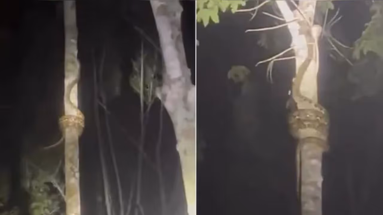 ವಿಡಿಯೋದ ಆರಂಭದಲ್ಲಿ, ಕೆಲವರು ಟಾರ್ಚ್ಲೈಟ್ ಸಹಾಯದಿಂದ ಕಾಡಿನಲ್ಲಿರುವ ಮರವನ್ನು ನೋಡುತ್ತಿರುವುದನ್ನು ಕಾಣಬಹುದು. ಕ್ಯಾಮೆರಾ ಜೂಮ್ ಮಾಡಿದ ತಕ್ಷಣ, ಒಂದು ಉದ್ದವಾದ ಹಾವು ಮರದ ಸುತ್ತಲೂ ಸುತ್ತಿಕೊಂಡಿರುವುದನ್ನು ಕಾಣಬಹುದು.