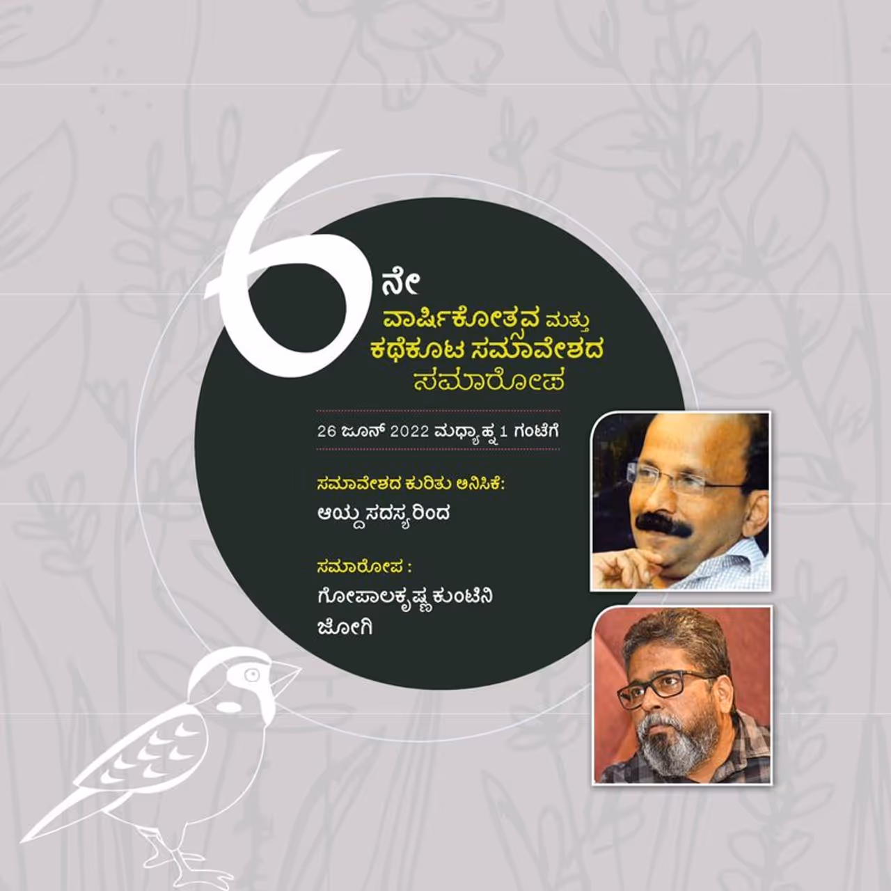 ಬೆಂಗಳೂರು (ಜೂನ್ 13): ಸಾಮಾಜಿಕ ಜಾಲತಾಣ ವಾಟ್ಸಪ್ (Whatsapp) ಎಂಬ ತಂತ್ರಜ್ಞಾನ ಅಚ್ಚರಿಯಲ್ಲಿ ಕಥೆಕೂಟ ಎಂಬ ಸಾಹಿತ್ಯಿಕ ವಾಟ್ಸಪ್ ಗ್ರೂಪ್ ( literature Whatsapp Group) ಅದ್ಭುತ ಅಂತ ಹೇಳಬಹುದು. ಇದೀಗ ಎಲ್ಲರ ಪ್ರೀತಿಯ ಕಥೆಕೂಟಕ್ಕೆ (Namma Kathe Koota) ಇದೇ 26ರಂದು 6ನೇ ವರ್ಷದ ಹುಟ್ಟುಹಬ್ಬದ ಸಂಭ್ರಮ. ಈ ಹಿನ್ನಲೆ ಕಥೆಕೂಟದ ಹಿರಿಯ, ಕಿರಿಯ ಕತೆಗಾರರೆಲ್ಲರ ಜೊತೆಯಾಗಿ ರಾಜ್ಯ ಮಟ್ಟದ ಕಥಾಕೂಟ ಸಮಾವೇಶ ಬೆಂಗಳೂರಿನಲ್ಲಿ ನಡೆಯಲಿದೆ.