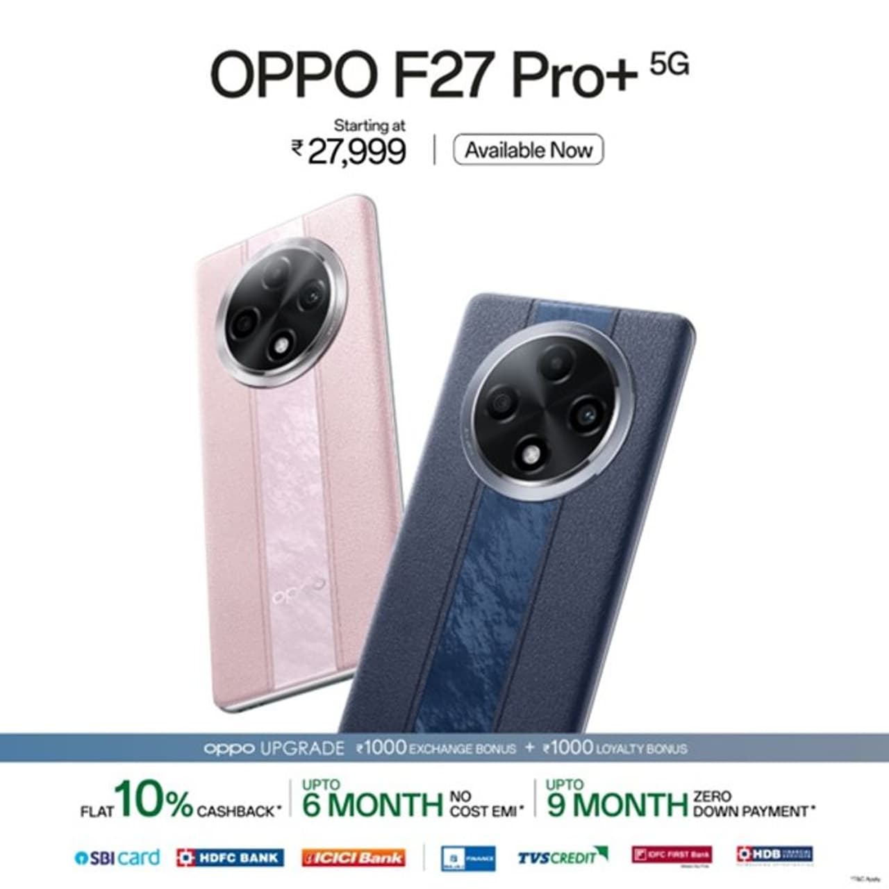 - OPPO F27 Pro+ ಗೆ ಅಪ್ಗ್ರೇಡ್ ಮಾಡಿ ಮತ್ತು INR 1000 ವಿನಿಮಯ ಬೋನಸ್ ಅನ್ನು ಸ್ವೀಕರಿಸಿ. ಈಗಾಗಲೇ OPPO ಬಳಸುತ್ತಿರುವ ಗ್ರಾಹಕರು INR 1000 ಮೌಲ್ಯದ ಹೆಚ್ಚುವರಿ ಲಾಯಲ್ಟಿ ಬೋನಸ್ ಅನ್ನು ಪಡೆಯುತ್ತಾರೆ.