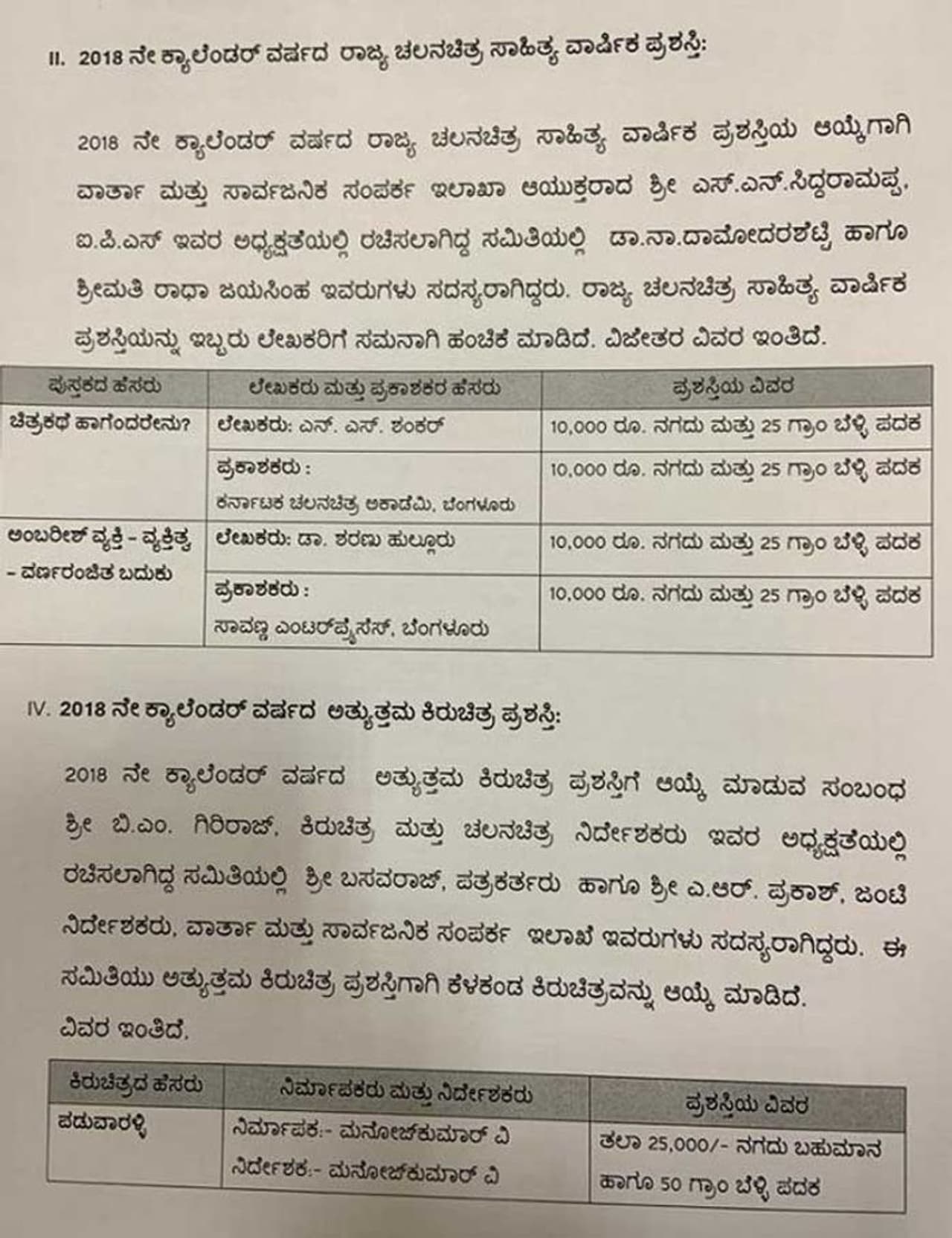 2018 ನೇ ಸಾಲಿನ ರಾಜ್ಯ ಚಲನಚಿತ್ರವ ಪ್ರಶಸ್ತಿ ಘೋಷಣೆ: