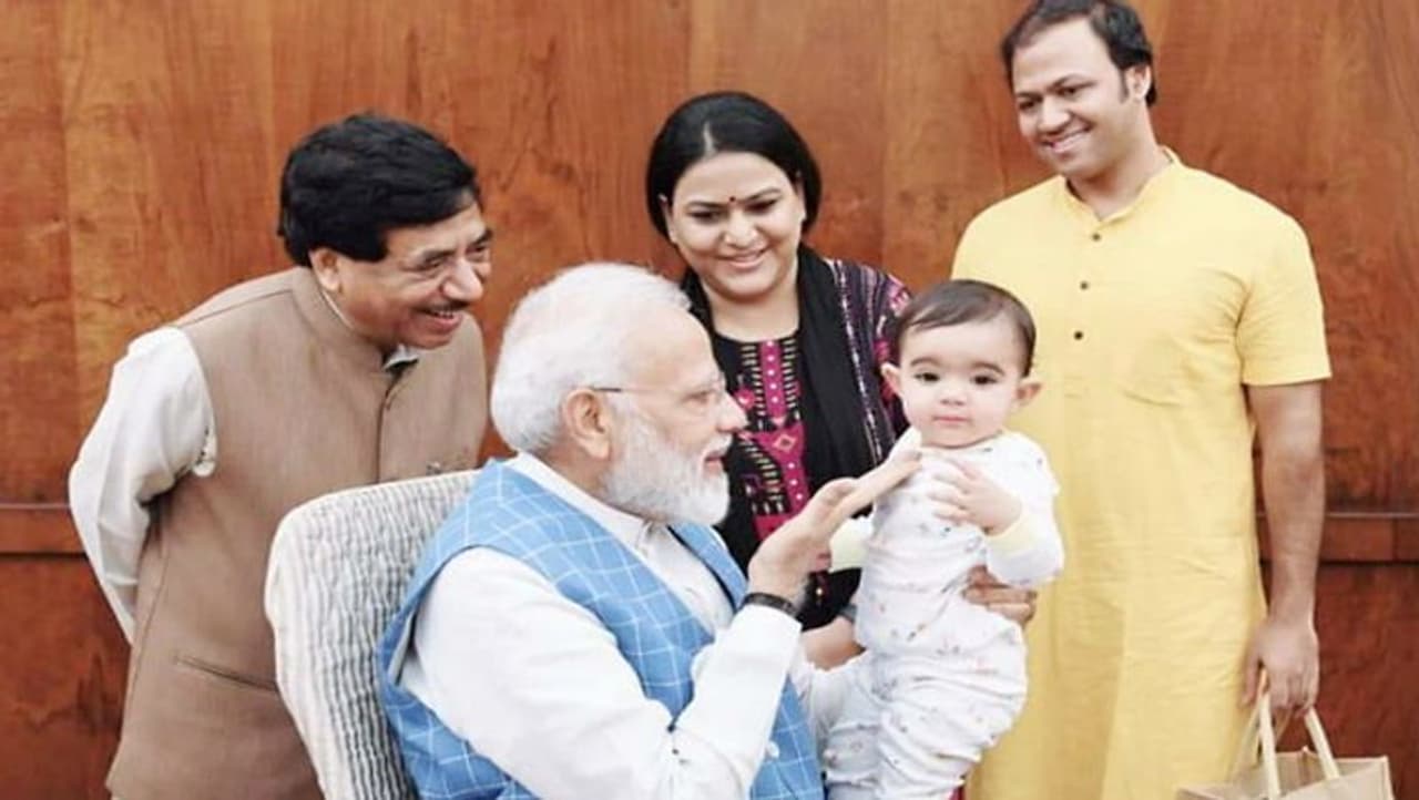 ಈ ಮುದ್ದಾದ ಮಗು ಮಧ್ಯಪ್ರದೇಶ ಸಂಸದ ಸತ್ಯನಾರಾಯಣ ಜತಿಯಾರ ಮೊಮ್ಮಗ. ಜತಿಯಾ ಕುಟುಂಬಸ್ಥರು ಮೋದಿ ಭೇಟಿಗಾಗಿ ಸಂಸತ್ತಿಗೆ ಆಗಮಿಸಿದಾಗ ಮೋದಿ ಅವರು ಮಗುವನ್ನು ಎತ್ತಿಕೊಂಡು ಆಡಿಸಿದ್ದಾರೆ.