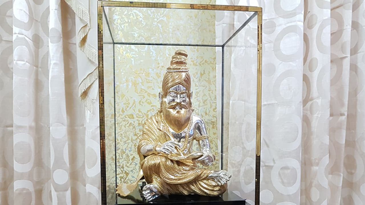 ಸಿ.ಎಸ್.ತಿಪ್ಪೇಸ್ವಾಮಿ ಕೈಚಳಕದಲ್ಲಿ ನಿರ್ಮಾಣಗೊಂಡ ಬಂಗಾರ ಲೇಪನದ ಪುತ್ಥಳಿ ಇದು. 2 ಅಡಿ ಎತ್ತರವಿರುವ ಬೆಳ್ಳಿ ವಾಲ್ಮೀಕಿ ಪುತ್ಥಳಿ ಆಕರ್ಷಕವಾಗಿದೆ.