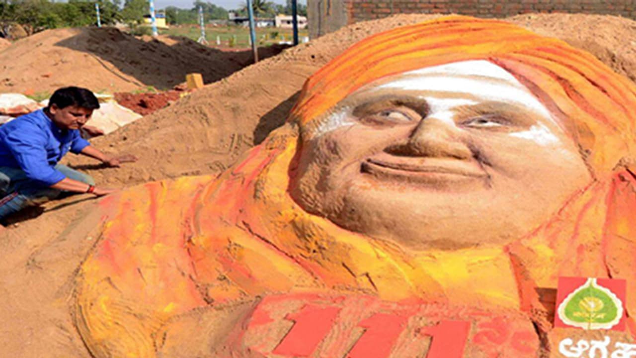 ನಡೆದಾಡುವ ದೇವರು, ತ್ರಿವಿಧ ದಾಸೋಹಿ ಸಿದ್ಧಗಂಗಾ ಮಠದ ಶತಾಯುಷಿ ಡಾ. ಶಿವಕುಮಾರ ಸ್ವಾಮೀಜಿ ಅವರ 111ನೇ ಜನ್ಮದಿನದ ಅಂಗವಾಗಿ ಇಲ್ಲಿನ ಖ್ಯಾತ ಕಲಾವಿದ ಮಂಜುನಾಥ ಹಿರೇಮಠ ಅವರು ಮರಳಿನಲ್ಲಿ ಅವರ ಕಲಾಕೃತಿಯನ್ನು ಬಿಡಿಸಿದ್ದಾರೆ.