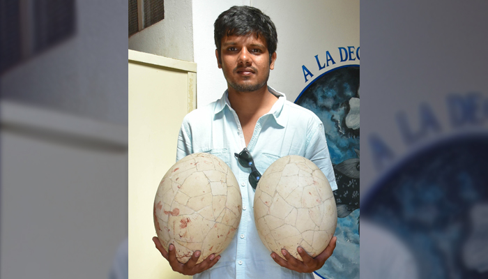 [ಎಲಿಫ್ಯಾಂಟ್ ಬರ್ಡ್ನ ಮೊಟ್ಟೆಕವಚದ ಪಳಿಯುಳಿಕೆಯೊಂದಿಗೆ ಶ್ರವಣ್]