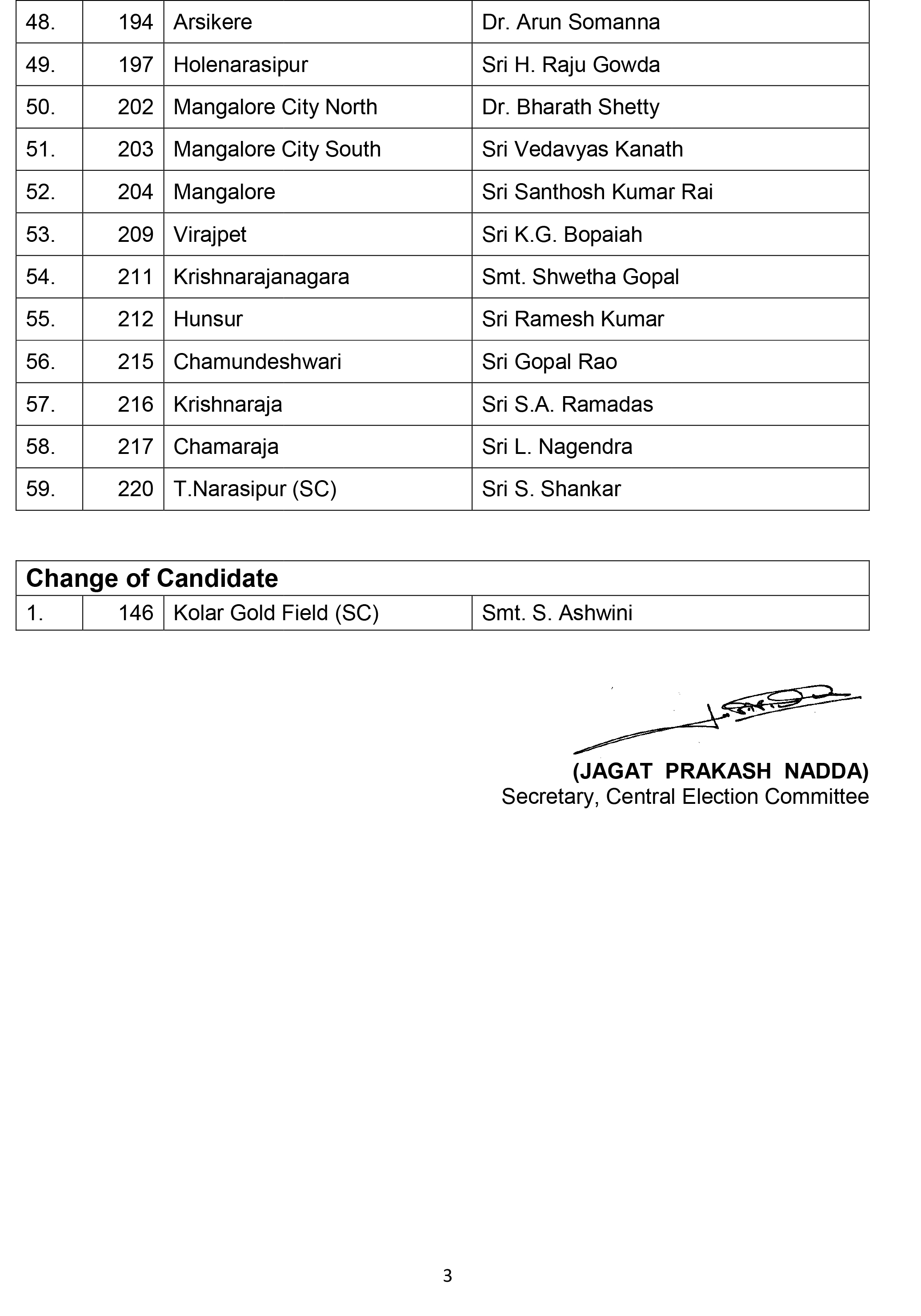 ಬಿಜೆಪಿ 3ನೇ ಟಿಕೆಟ್ ಬಿಡುಗಡೆ; ಯಾರಿಗುಂಟು, ಯಾರಿಗಿಲ್ಲ ಟಿಕೆಟ್? ಇಲ್ಲಿದೆ ಫುಲ್ ಲಿಸ್ಟ್