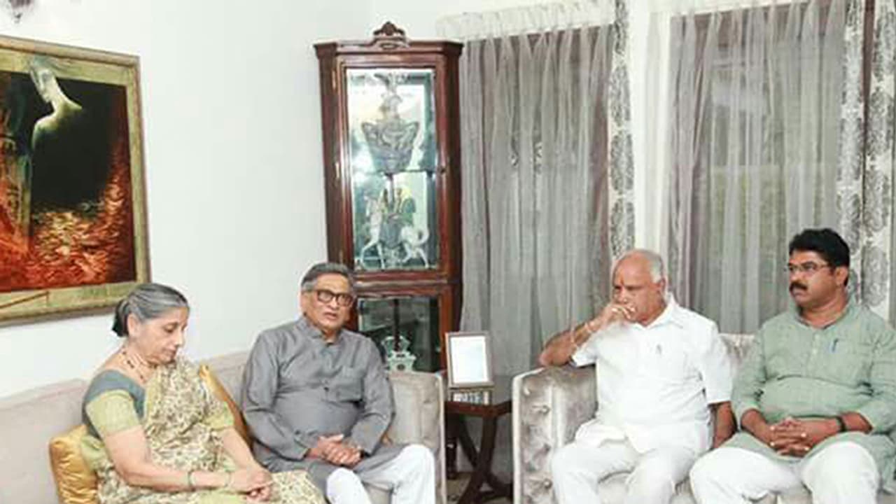 ಸದಾಶಿವನಗರದ ಕೃಷ್ಣರವರ ನಿವಾಸಕ್ಕೆ ಬಿಜೆಪಿ ಮುಖಂಡರೊಂದಿಗೆ ತೆರಳಿದ ಬಿಎಸ್'ವೈ ಅವರನ್ನು ಎಸ್'ಎಂಕೆ ದಂಪತಿ ಆಹ್ವಾನಿಸಿ ಸೌಜನ್ಯಯುತವಾಗಿ ಮಾತುಕತೆ ನಡೆಸಿದರು. ಆದರೆ ಬಿಜೆಪಿ ಸೇರ್ಪಡೆಯ ಖಚಿತತೆಯ ಬಗ್ಗೆ ಕಾಂಗ್ರೆಸ್ ನಿರ್ಗಮಿತ ಹಿರಿಯ ನಾಯಕ ಸ್ಪಷ್ಟಪಡಿಸಿಲ್ಲ.