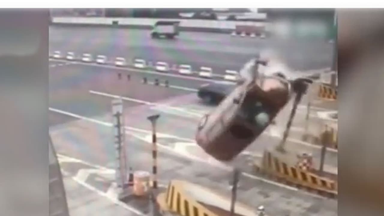 ಹೀಗೆ ಚೀನಾದ ರಾಜಧಾನಿ ರಾಜಧಾನಿ ಬಿಜೀಂಗ್ ನಲ್ಲಿ ಬೇಗವಾಗಿ ಬಂದ ಕಾರೋಂದು ಟೋಲ್ ಗೇಟ್'ಗೆ ಡಿಕ್ಕಿ ಹೊಡೆದ ಪರಿಣಾಮ 360 ಡಿಗ್ರಿ ಮೇಲಕ್ಕೆ ಹಾರಿ ಒಂದು ಸುತ್ತು ಹಾಕಿ ನೆಲಕ್ಕೆ ಅಪ್ಪಳಿಸಿದೆ.