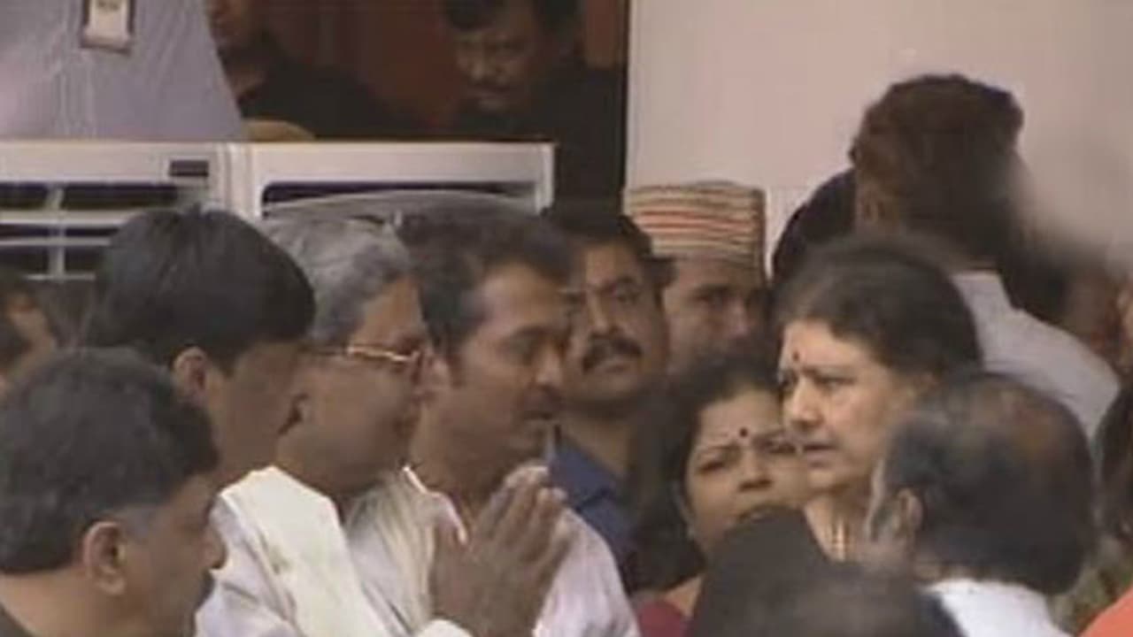 ಕರ್ನಾಟಕ ಸಿಎಂ ಸಿದ್ಧರಾಮಯ್ಯ ತಮಿಳುನಾಡಿನರಾಜಕೀಯದಲ್ಲಿತನ್ನಅಳಿಯದಛಾಪುಮೂಡಿಸಿದ್ದಜಯಾಅಂತಿಮ ದರ್ಶನ ಪಡೆದು ಶ್ರದ್ಧಾಂಜಲಿ ಅರ್ಪಿಸಿದ್ದಾರೆ. ಜಯಲಲಿತಾ ಮೃತರಾದ ಹಿನ್ನೆಲೆಯಲ್ಲಿ ಗೌರವ ಸೂಚಕವಾಗಿ ಕರ್ನಾಟಕದಲ್ಲಿ ಒಂದು ಶೋಕಾಚರಣೆ ಆಚರಿಸಲಾಗಿದೆ.