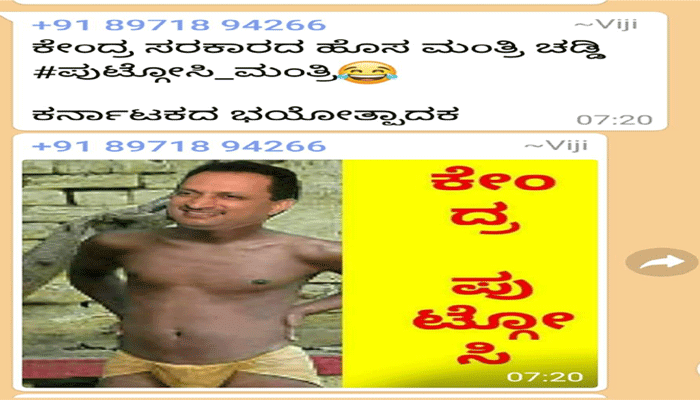 ಇನ್ನೊಂದು ಪೋಸ್ಟ್ ನಲ್ಲಿ ಕೇಂದ್ರ ಸರ್ಕಾರದ ಹೊಸ ಮಂತ್ರಿ 'ಚಡ್ಡಿ ಪುಟ್ಗೋಸಿ ಮಂತ್ರಿ', 'ಕರ್ನಾಟಕದ ಭಯೋತ್ಪಾದಕ', 'ಕೇಂದ್ರ ಪುಟ್ಗೋಸಿ' ಎಂದು ಹೇಳಿ ಫೋಟೋ ಹಾಕಲಾಗಿತ್ತು. ಅಲ್ಲದೇ ಮತ್ತೊಂದು ಪೋಸ್ಟ್ನಲ್ಲಿ ಅನಂತ್ ಕುಮಾರ್ ಹೆಗಡೆ ಫೋಟೋವನ್ನು ಅವಮಾನಿಸುವಂತೆ ಪೋಸ್ಟ್ ಮಾಡಲಾಗಿತ್ತು.