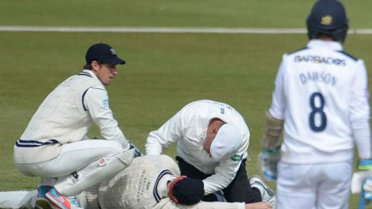 ಶೆಫೀಲ್ಡ್ ಶೀಲ್ಡ್ ಪಂದ್ಯವೊಂದರಲ್ಲಿ ಬೌನ್ಸರ್ ಎದುರಿಸುತ್ತಿದ್ದ ಆಡಂ ಅವರ ತಲೆಗೆ ಚೆಂಡು ಬಲವಾಗಿ ಬಡಿದಿದೆ.