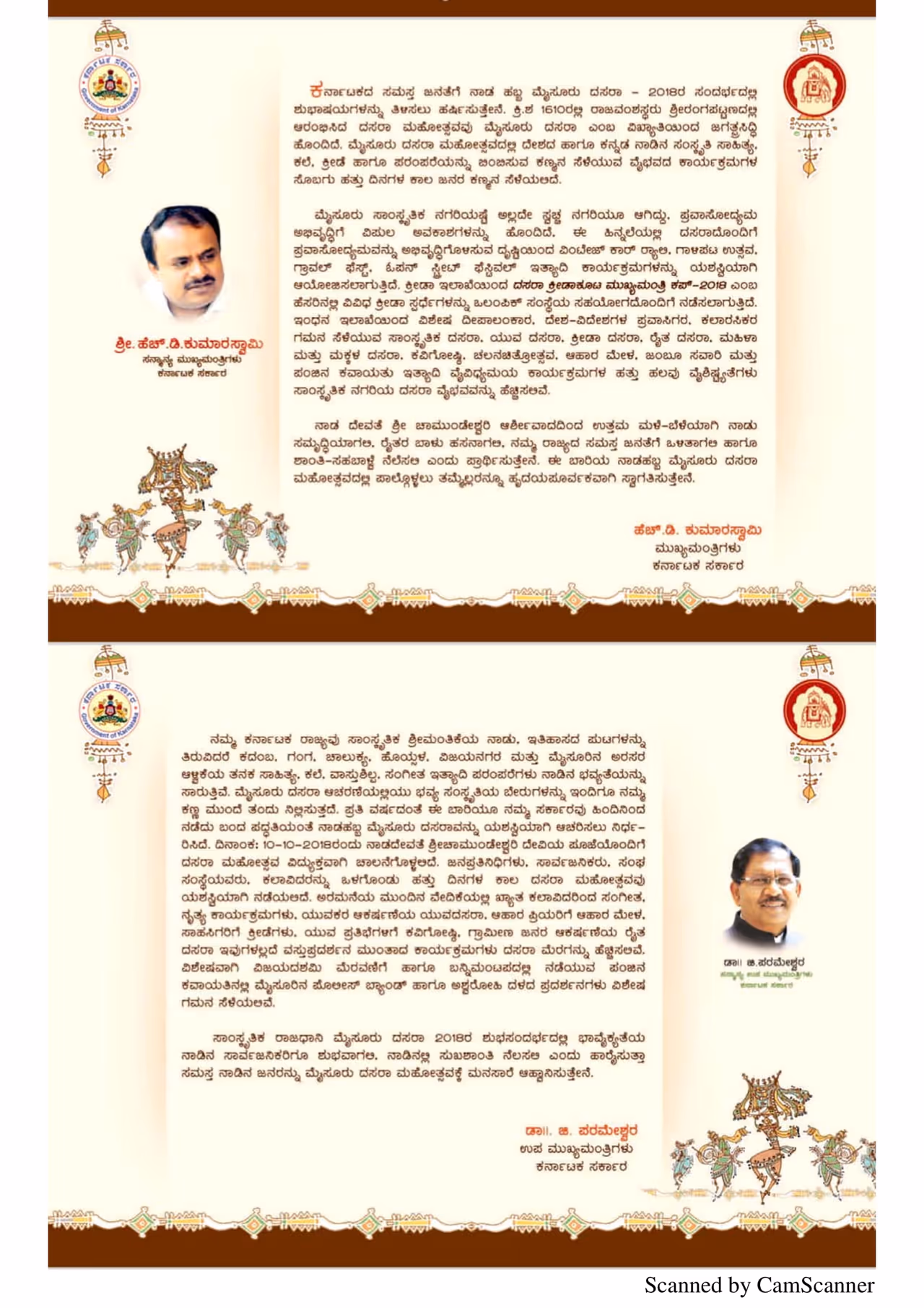 ಅ. 10 ರಂದು ಅರಮನೆ ಆವರಣದಲ್ಲಿ ಸಂಜೆ 6 ಗಂಟೆಗೆ ದಸರಾ ಸಾಂಸ್ಕೃತಿಕ ಕಾರ್ಯಕ್ರಮಗಳ ಉದ್ಘಾಟನೆ ಹಾಗೂ ರಾಜ್ಯ ಸಂಗೀತ ವಿದ್ವಾನ್ ಪ್ರಶಸ್ತಿ ಪ್ರದಾನ ಸಮಾರಂಭವನ್ನು ಮುಖ್ಯಮಂತ್ರಿ ಹೆಚ್.ಡಿ. ಕುಮಾರಸ್ವಾಮಿ ಉದ್ಘಾಟಿಸಲಿದ್ದು ಡಿಸಿಎಂ ಡಾ. ಜಿ. ಪರಮೇಶ್ವರ್ ಸೇರಿದಂತೆ ಹಲವು ಸಚಿವರು ಮುಖ್ಯ ಅತಿಥಿಗಳಾಗಿ ಪಾಲ್ಗೊಳ್ಳಲಿದ್ದಾರೆ.